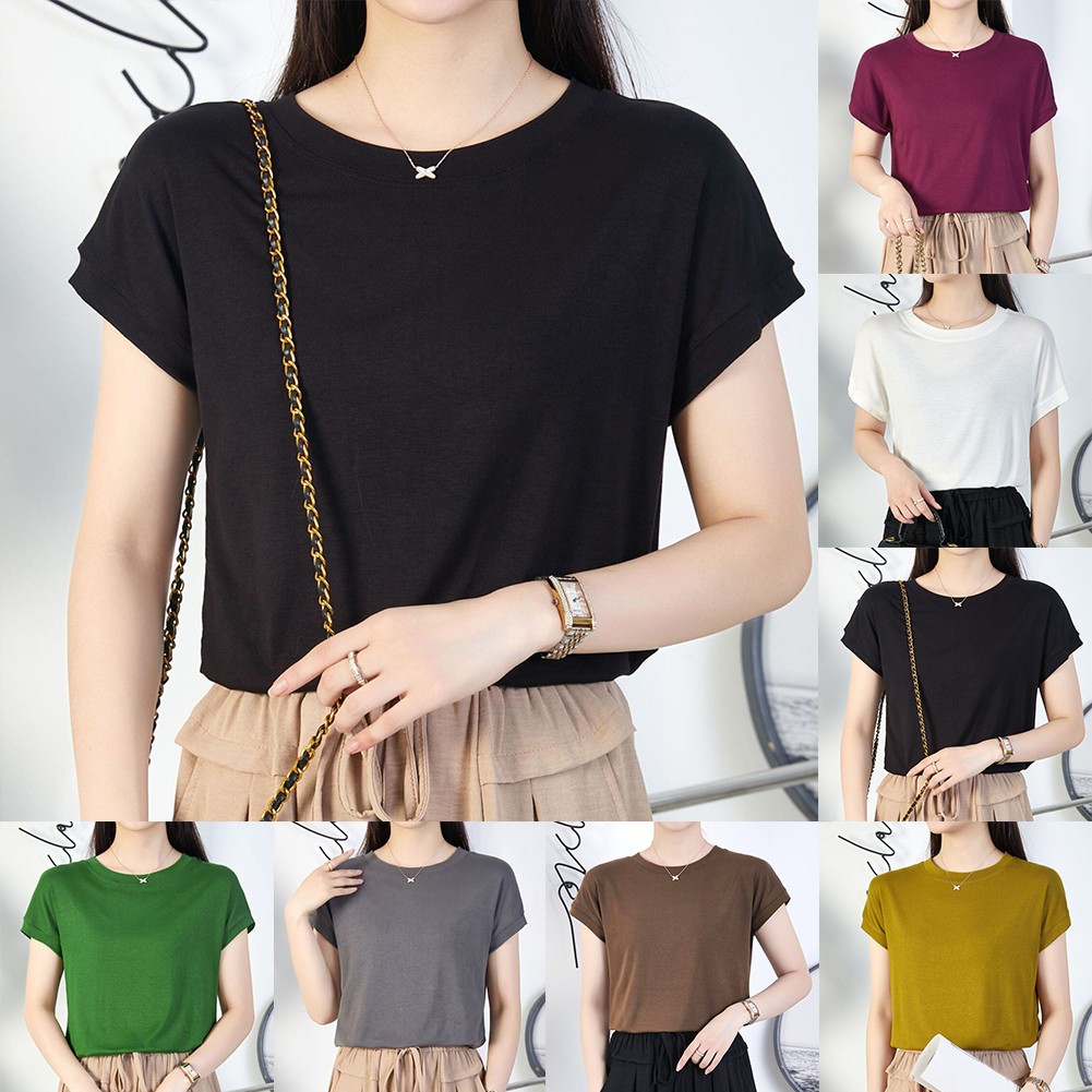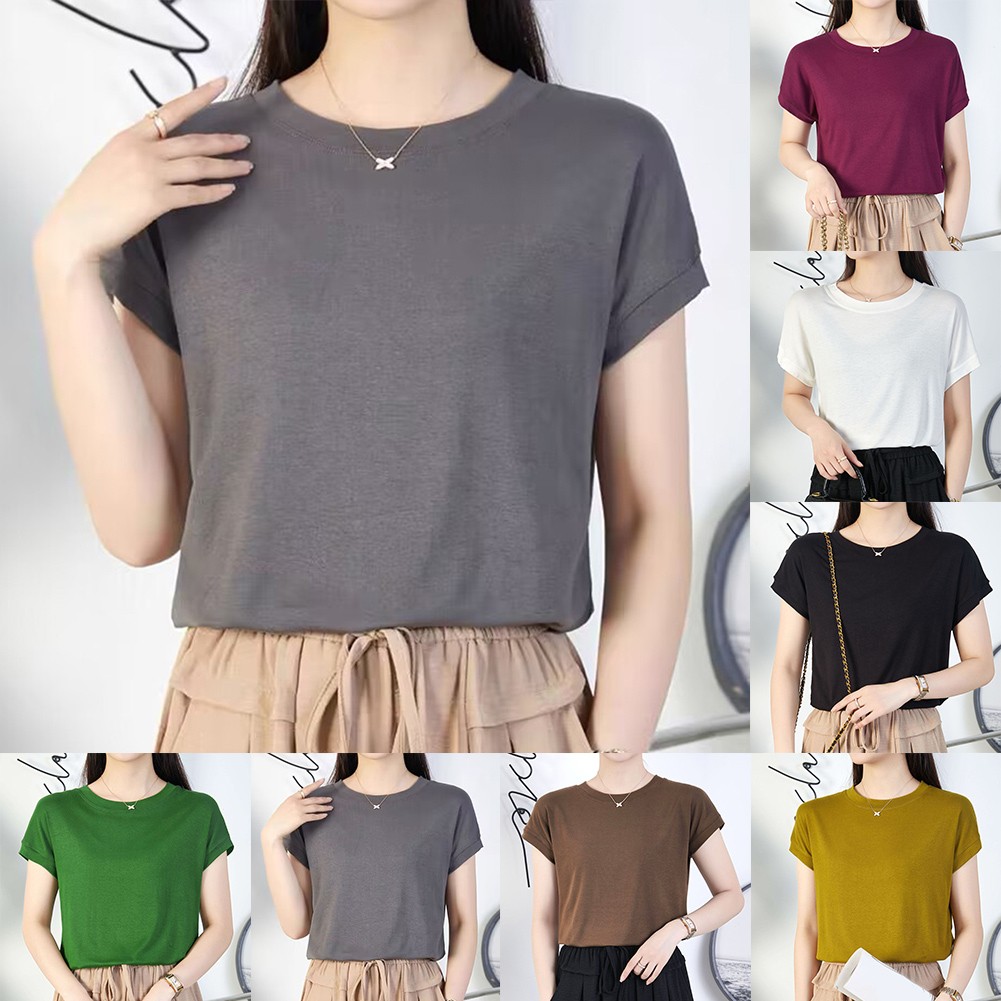 * Caractéristiques de l'article :Femmes, t-shirt ample à manches courtes de couleur unie d'été, haut à la mode basique tout assorti