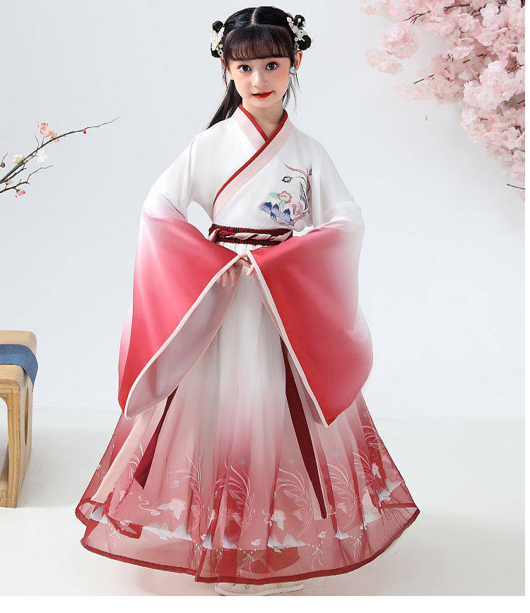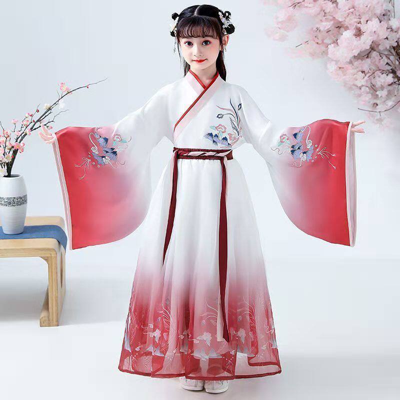 Girl Traditional Chinese Dress Ancient Retro Costume Hanfu Tang Dynasty New Year Suit Dance Cheongsam Kimono Toddler Clothes