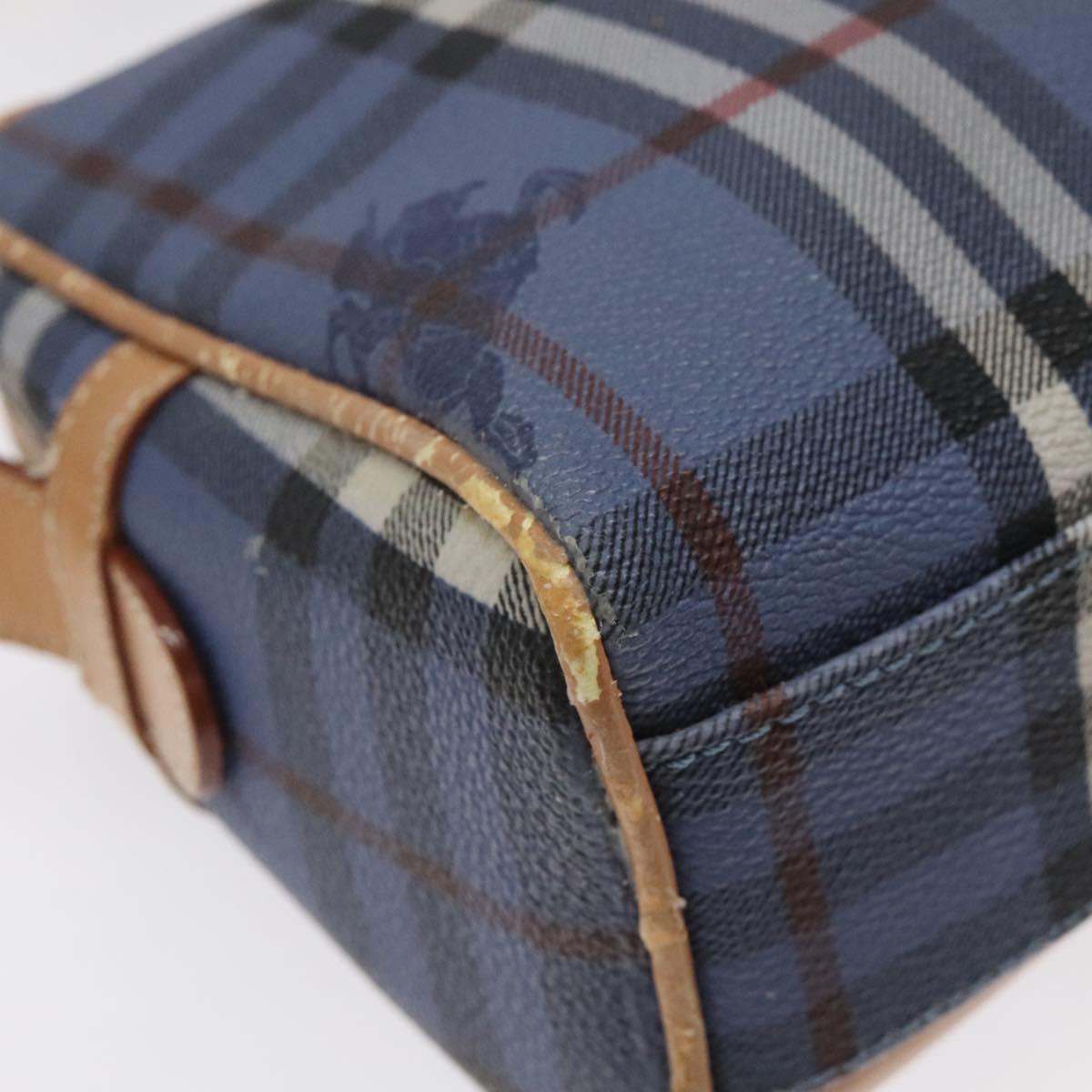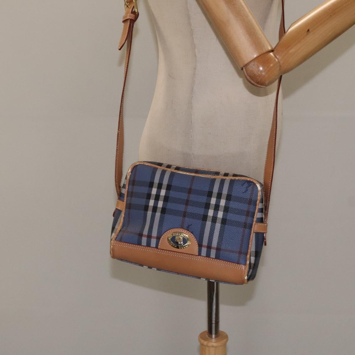 Burberrys Nova Check Shoulder Bag PVC Blue Gold Auth 124836