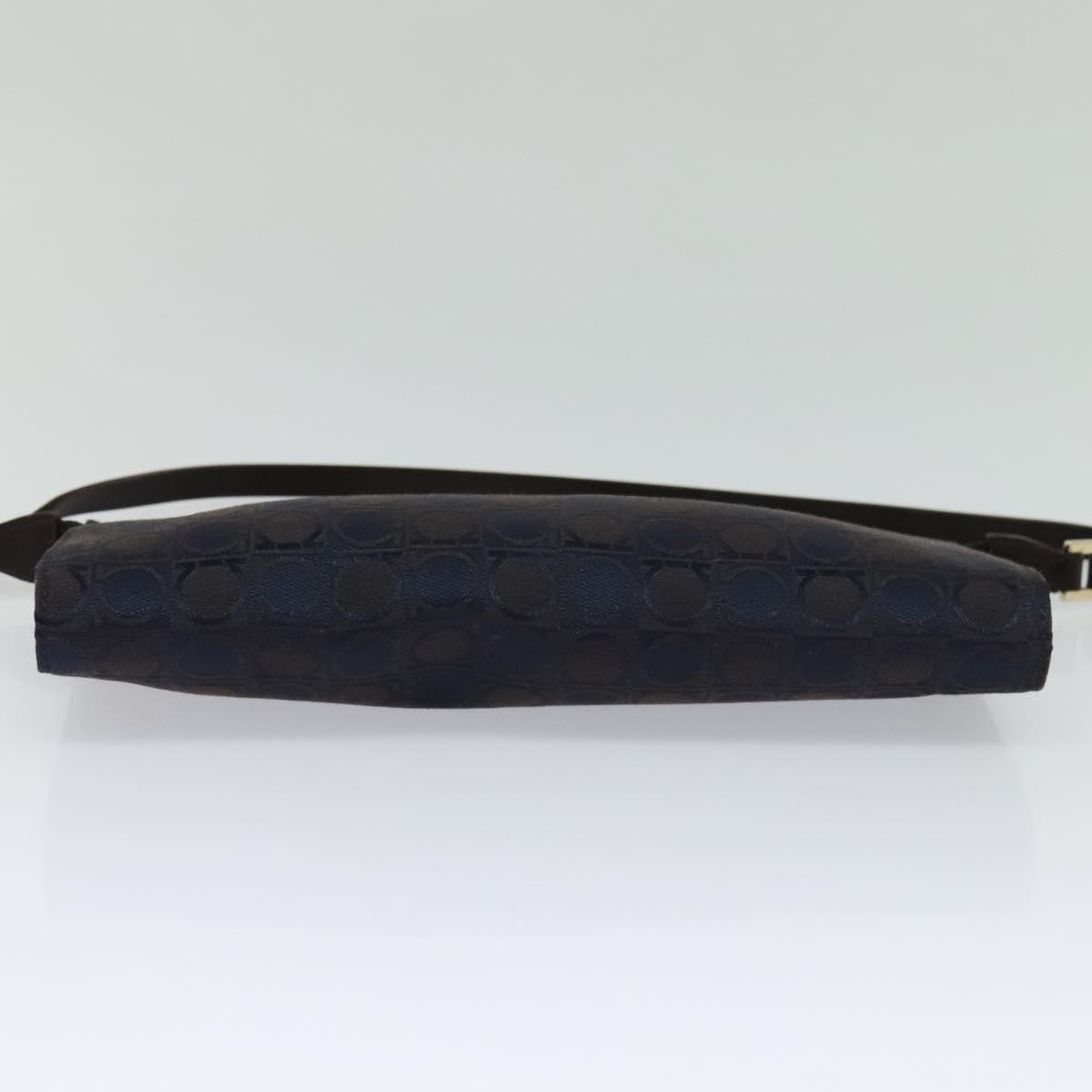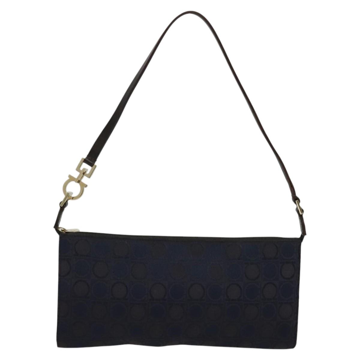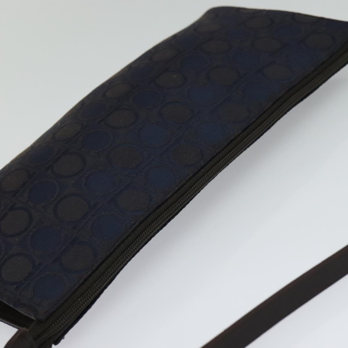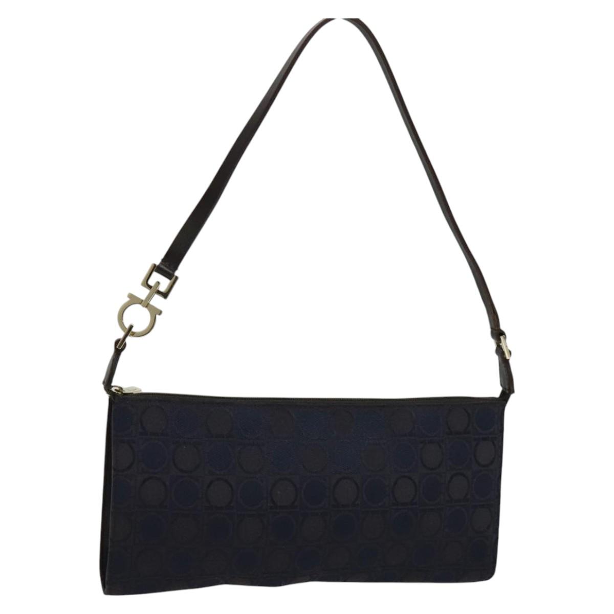 Salvatore Ferragamo Gancini Hand Bag Canvas Navy Gold Auth yk17315