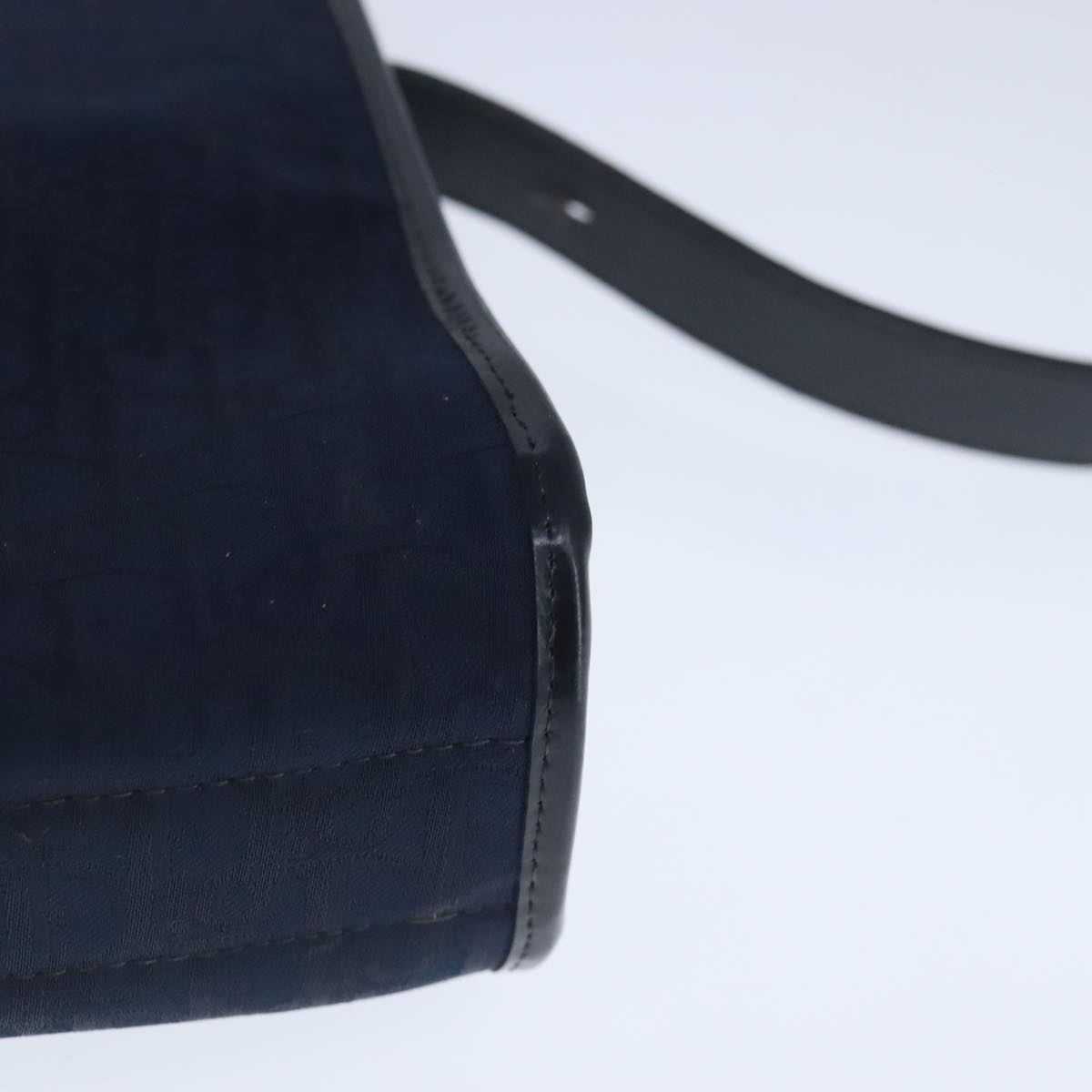 Christian Dior Trotter Canvas Shoulder Bag Navy Gold Auth ep6477
