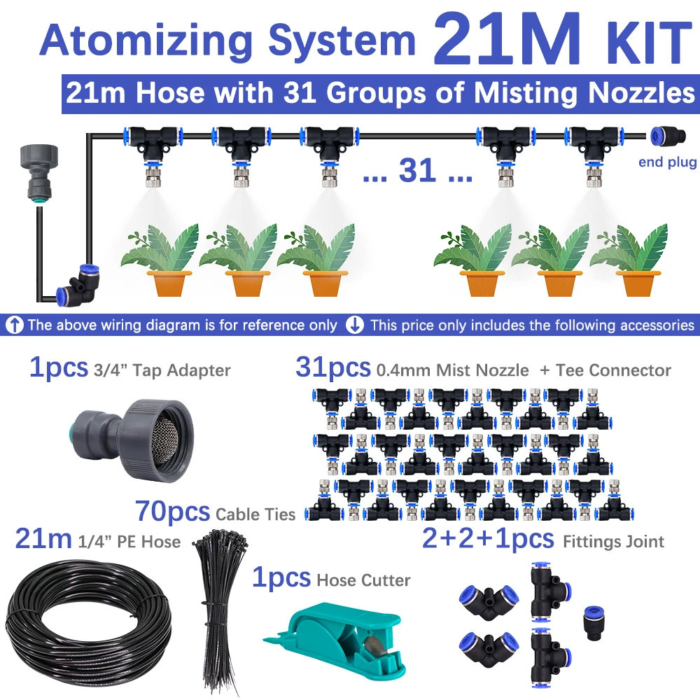 6-21m 0.4mm Low-pressure Misting Nozzles Cooling System Fine Atomization Sprayer DIY Garden Irrigation Automatic Watering Kits