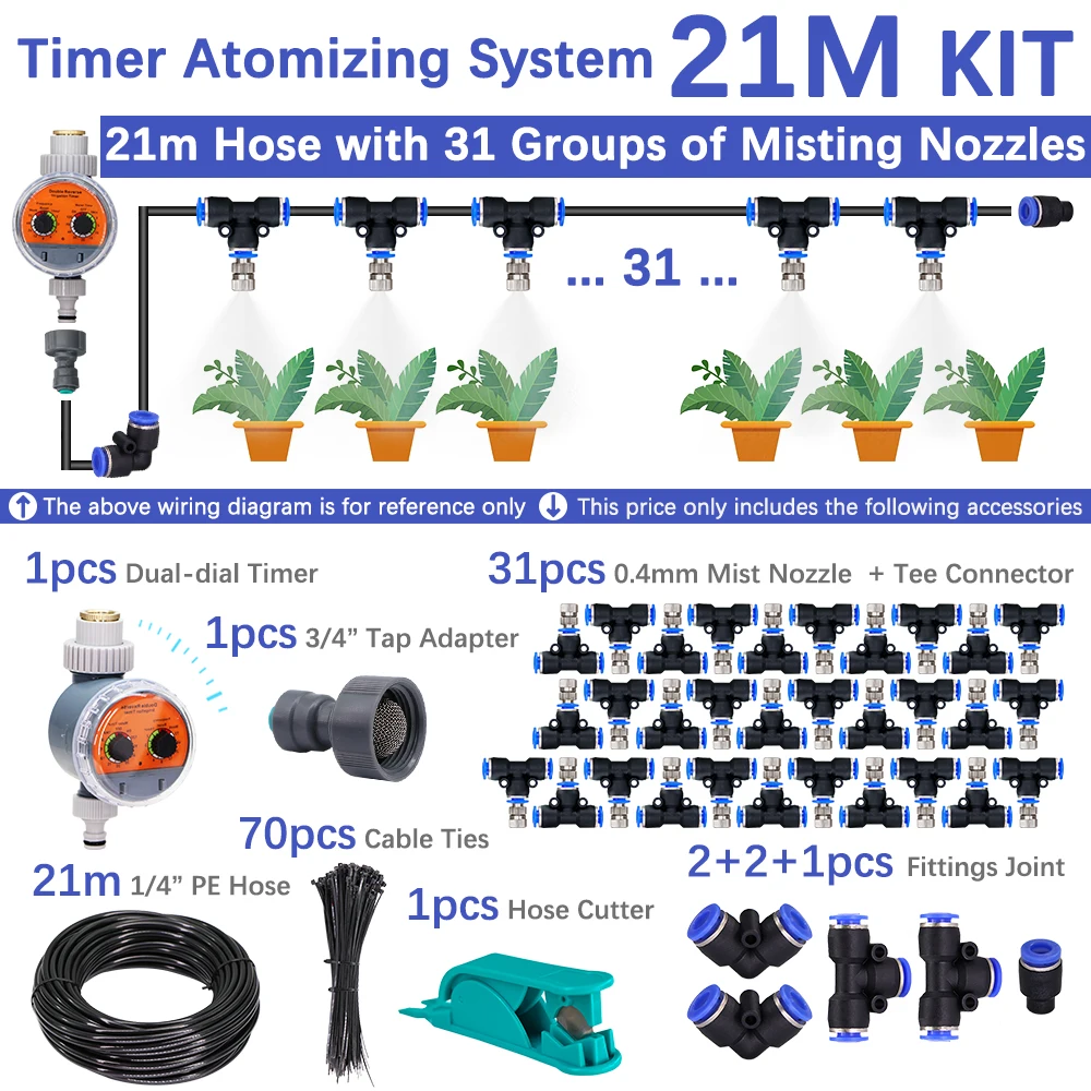 - Watering all of your plants, vegetables, bonsai, trees easily via using this micro drip and misting irrigation system.