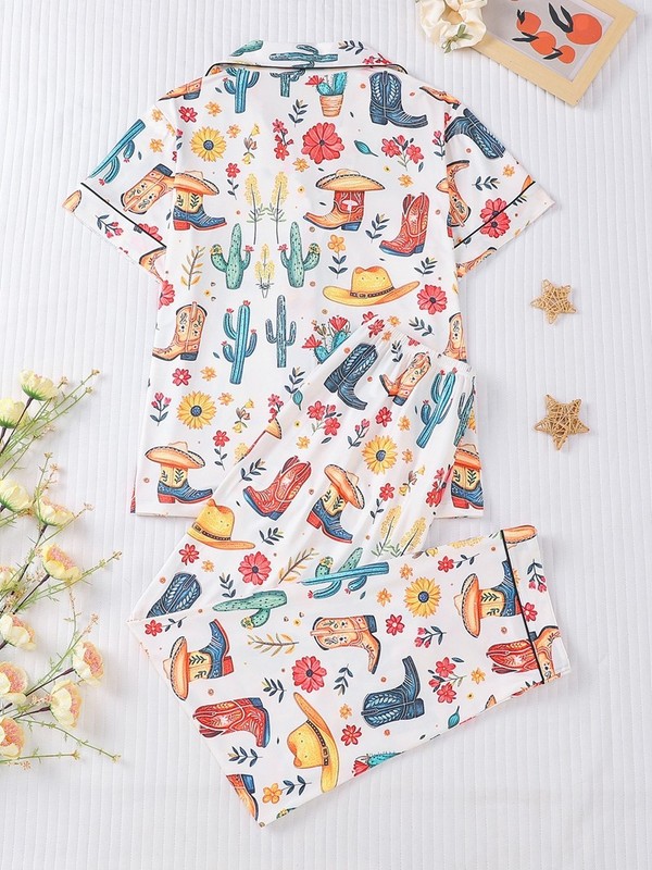 Womens Pajamas Set Cute Sleepwear Soft Sleep Nightshirts Print Comfy Pyjama Set
