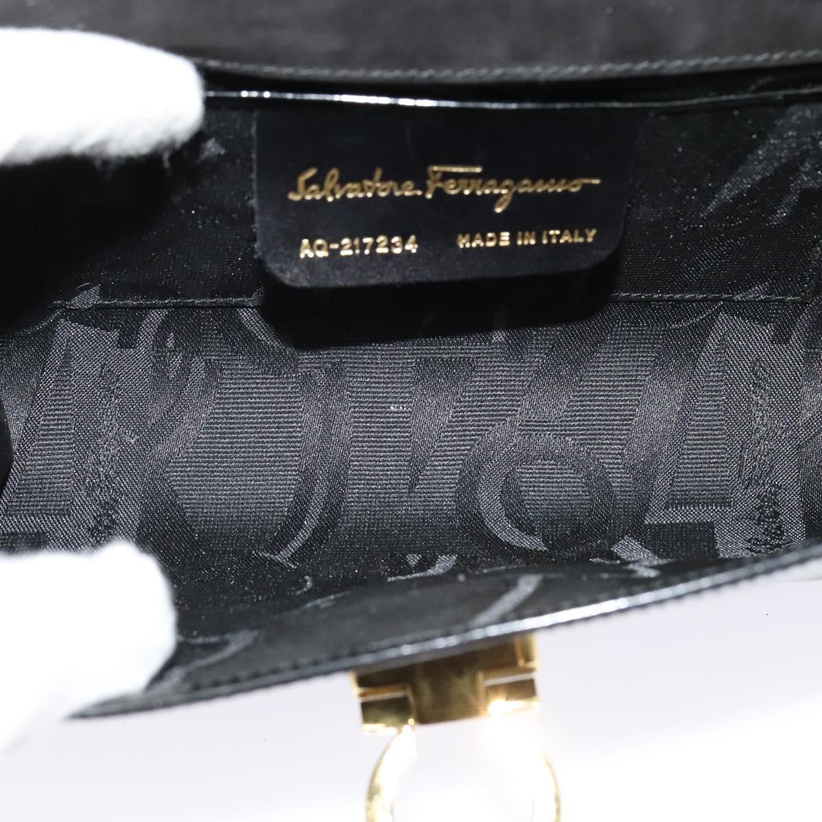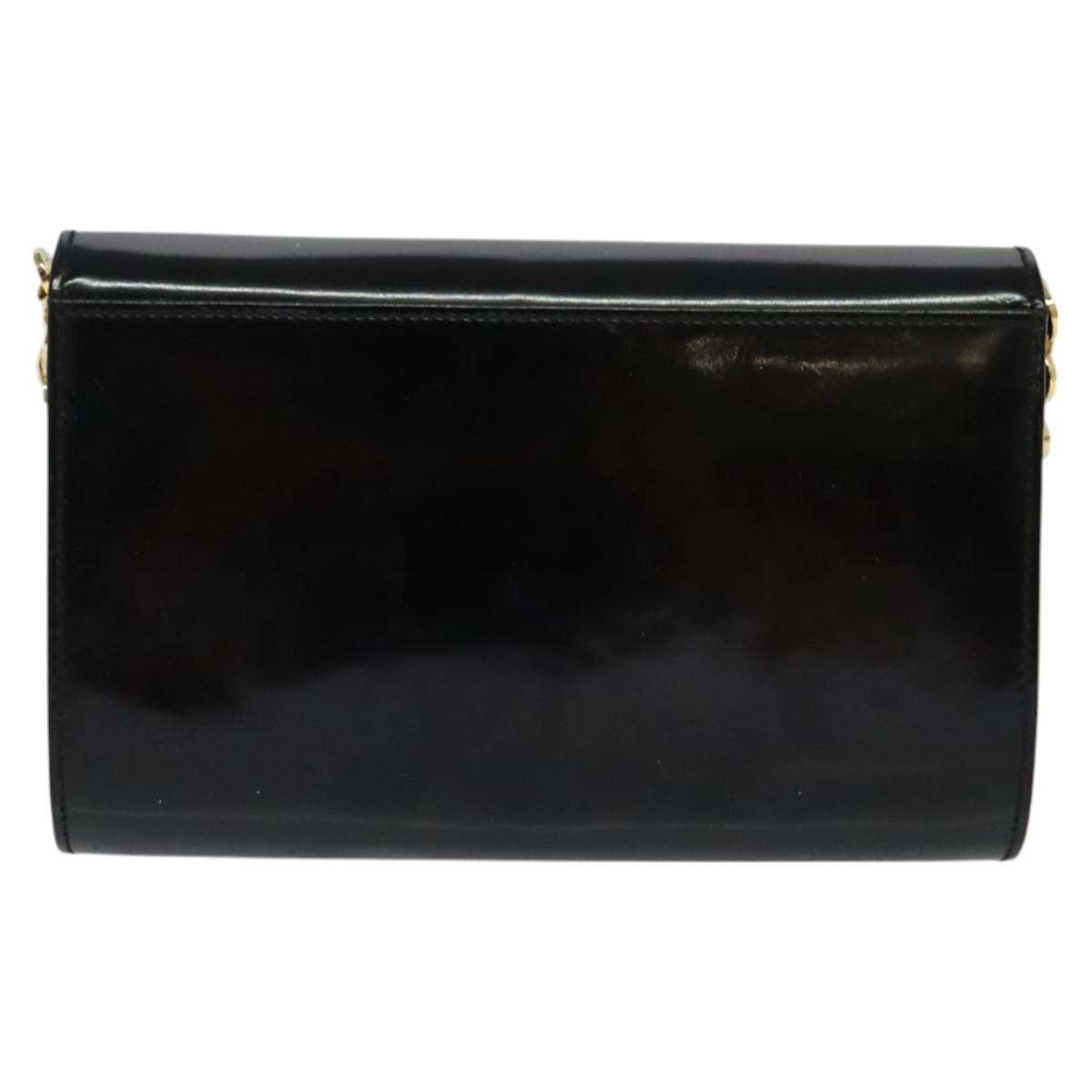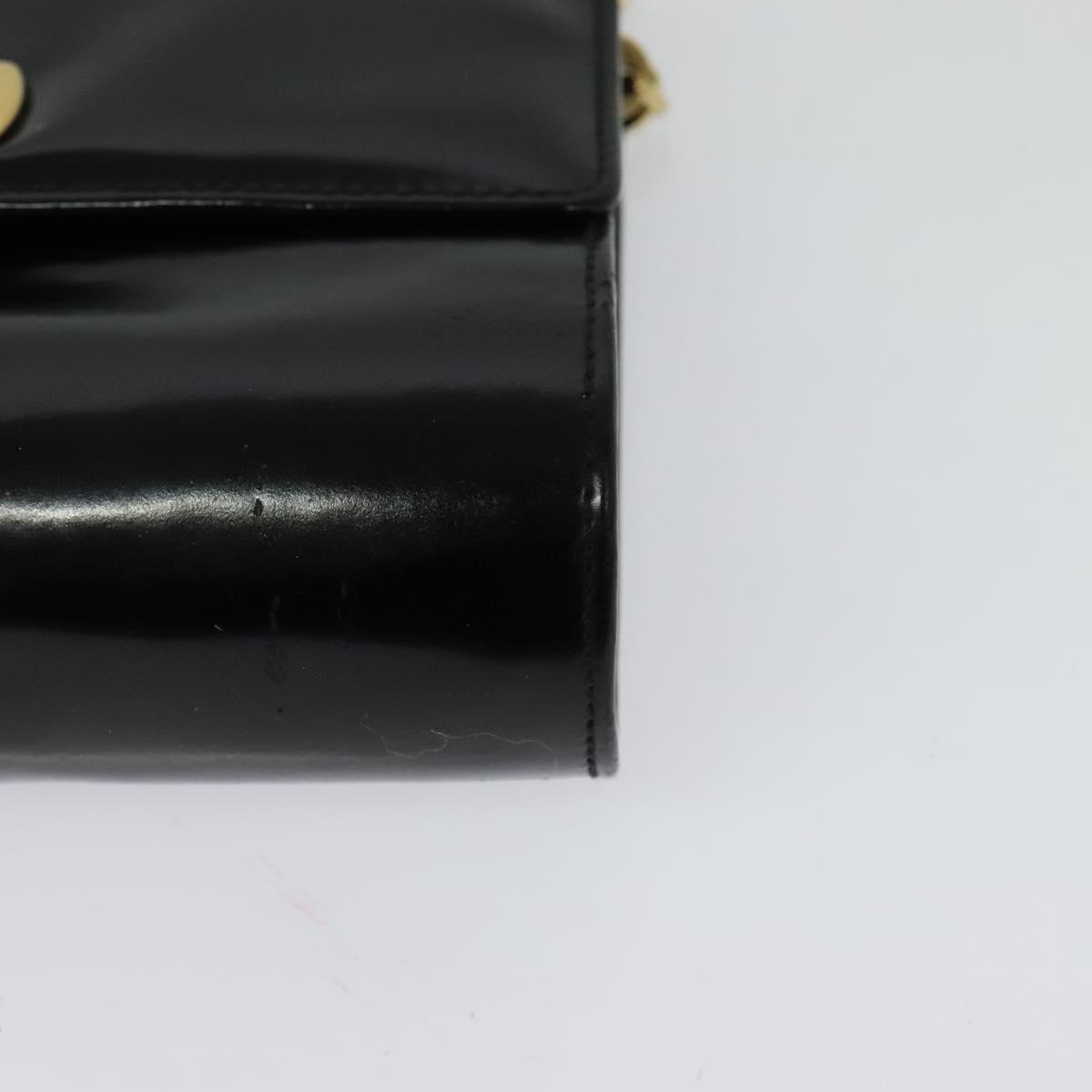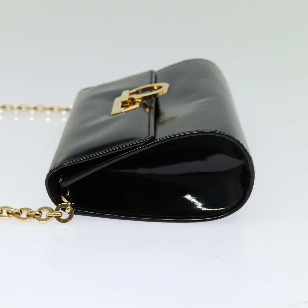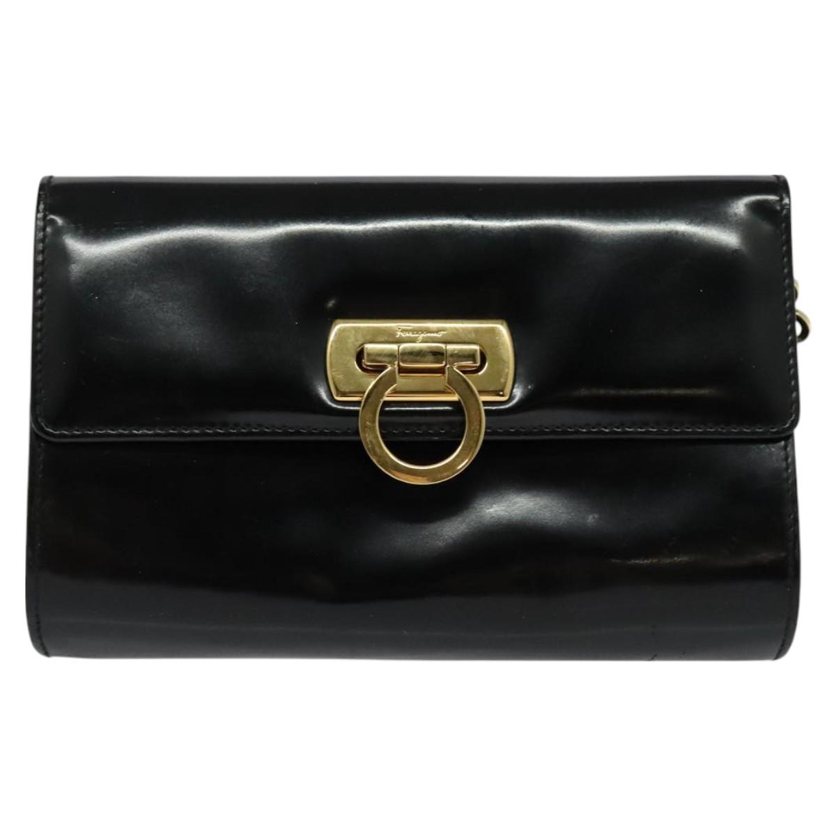Salvatore Ferragamo Gancini Chain Bag Patent Leather Black Gold Auth 126967