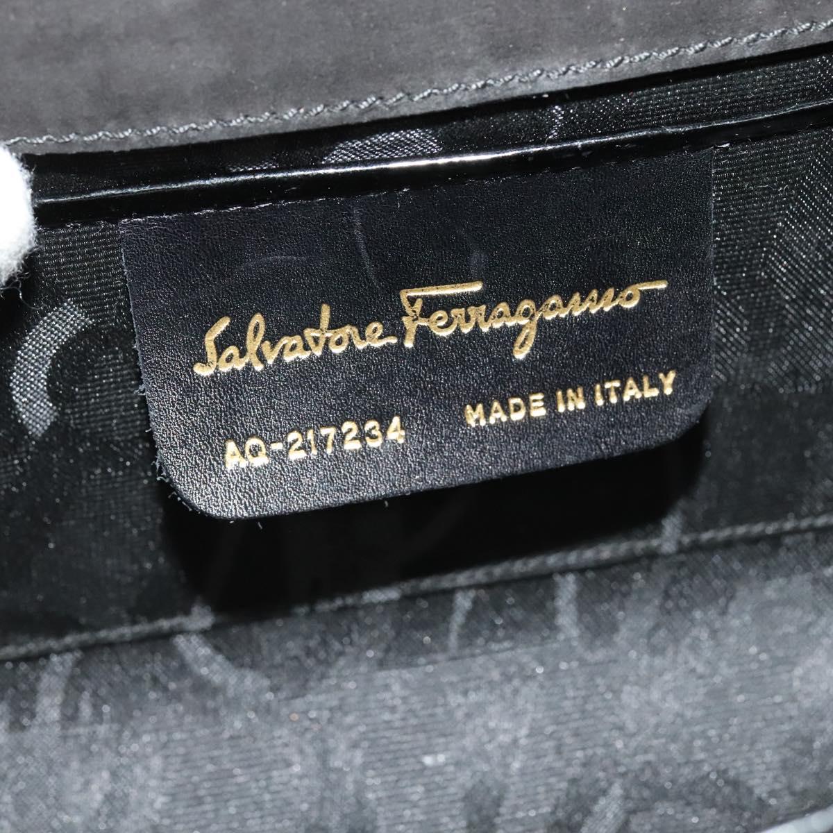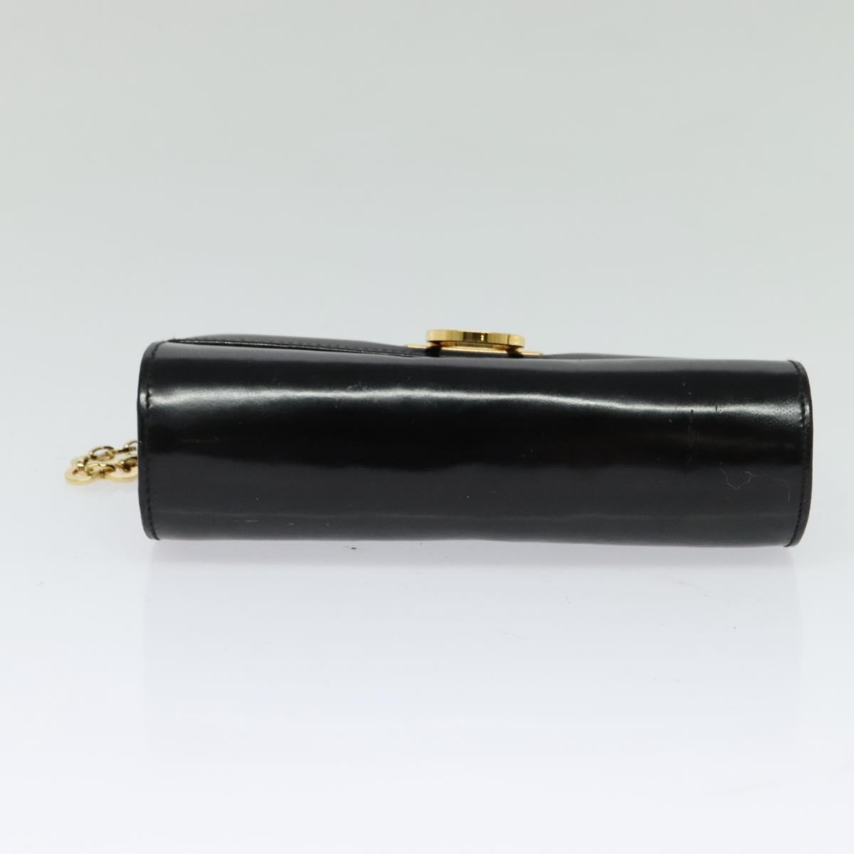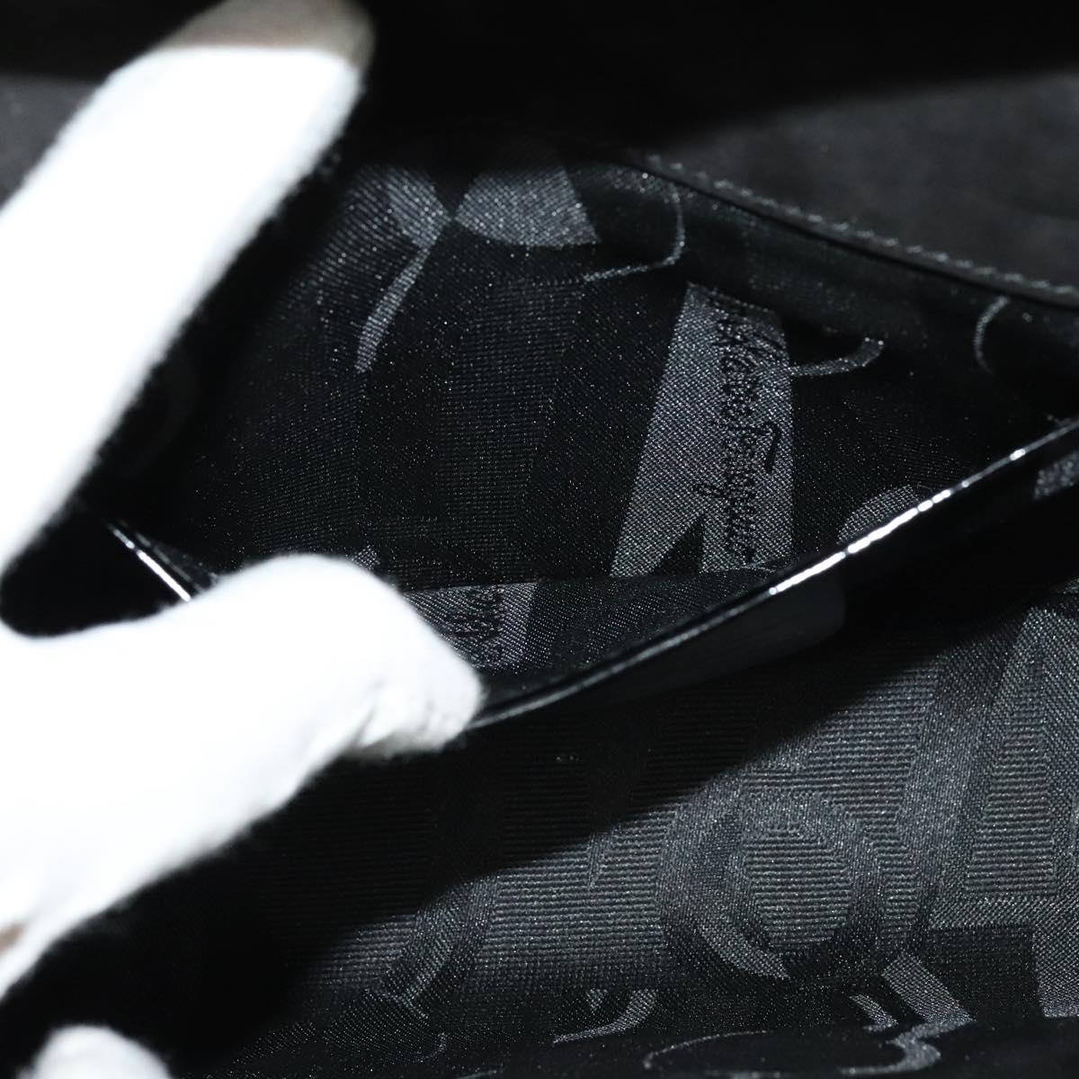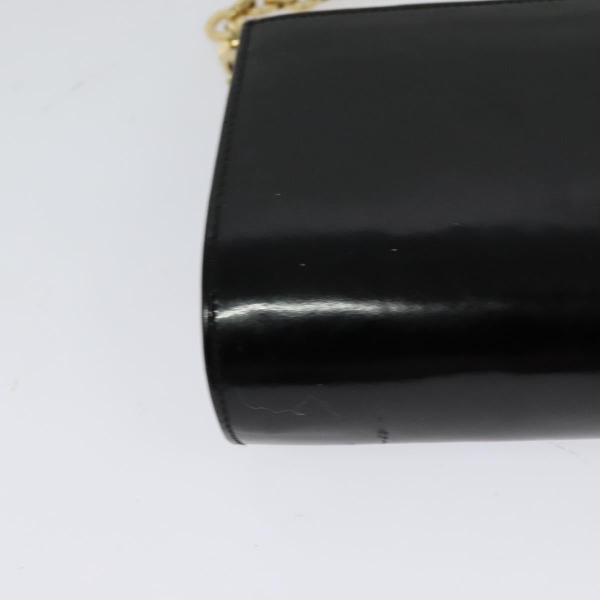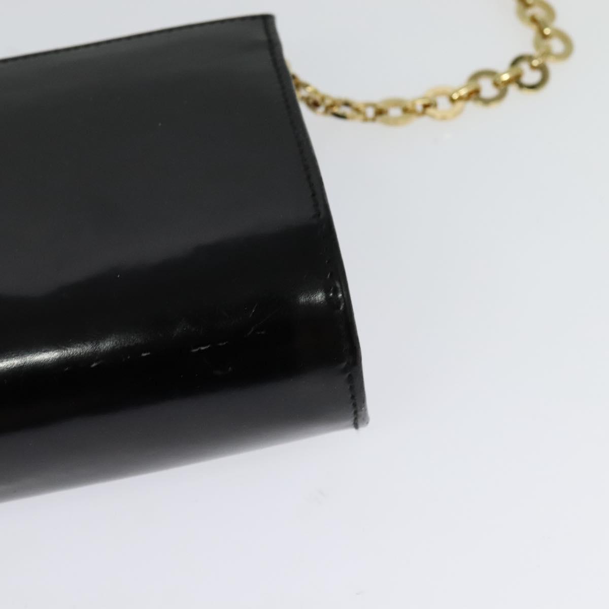 Salvatore Ferragamo Gancini Chain Bag Patent Leather Black Gold Auth 126967