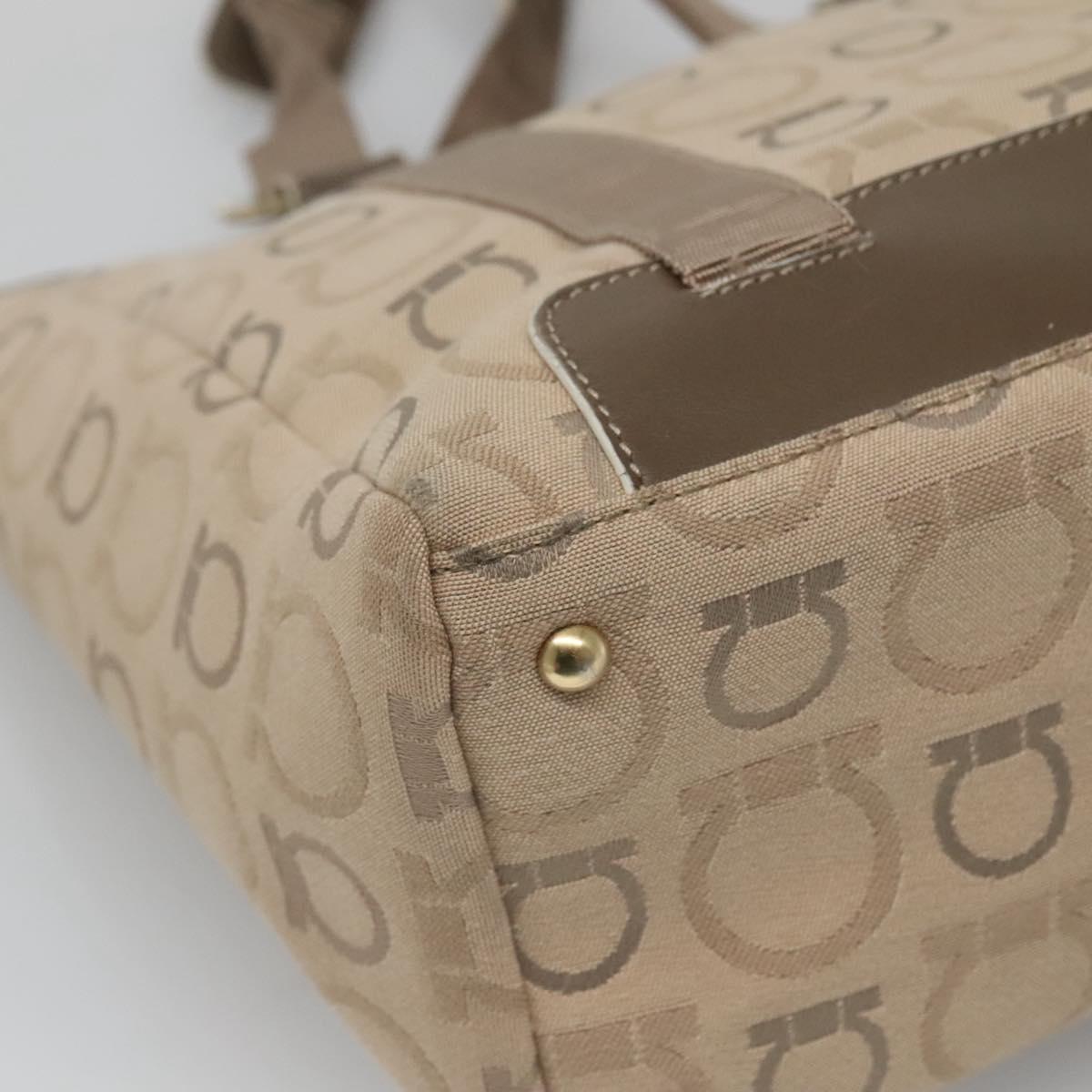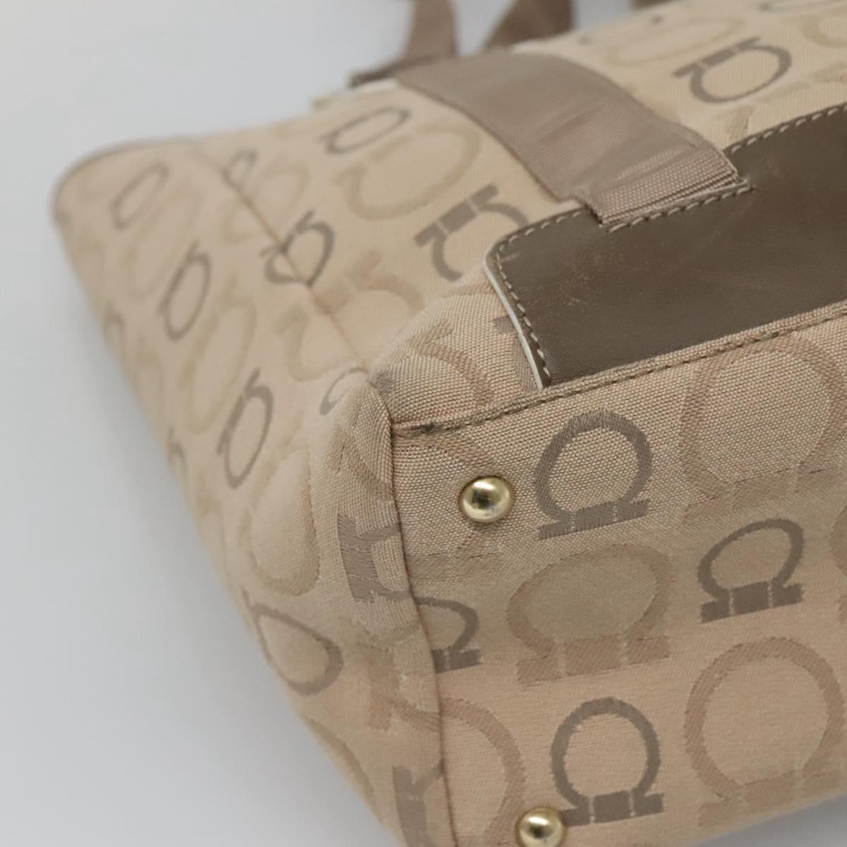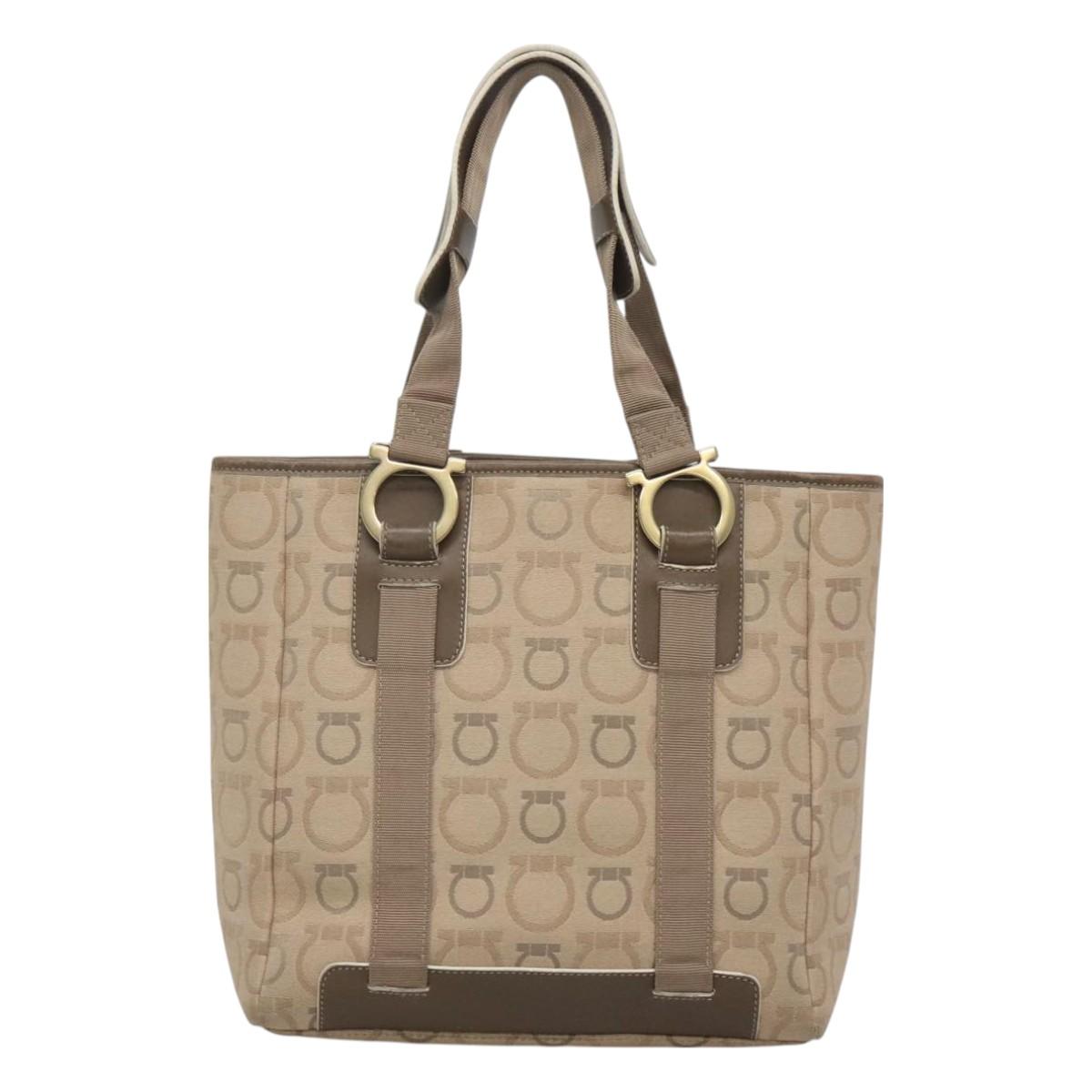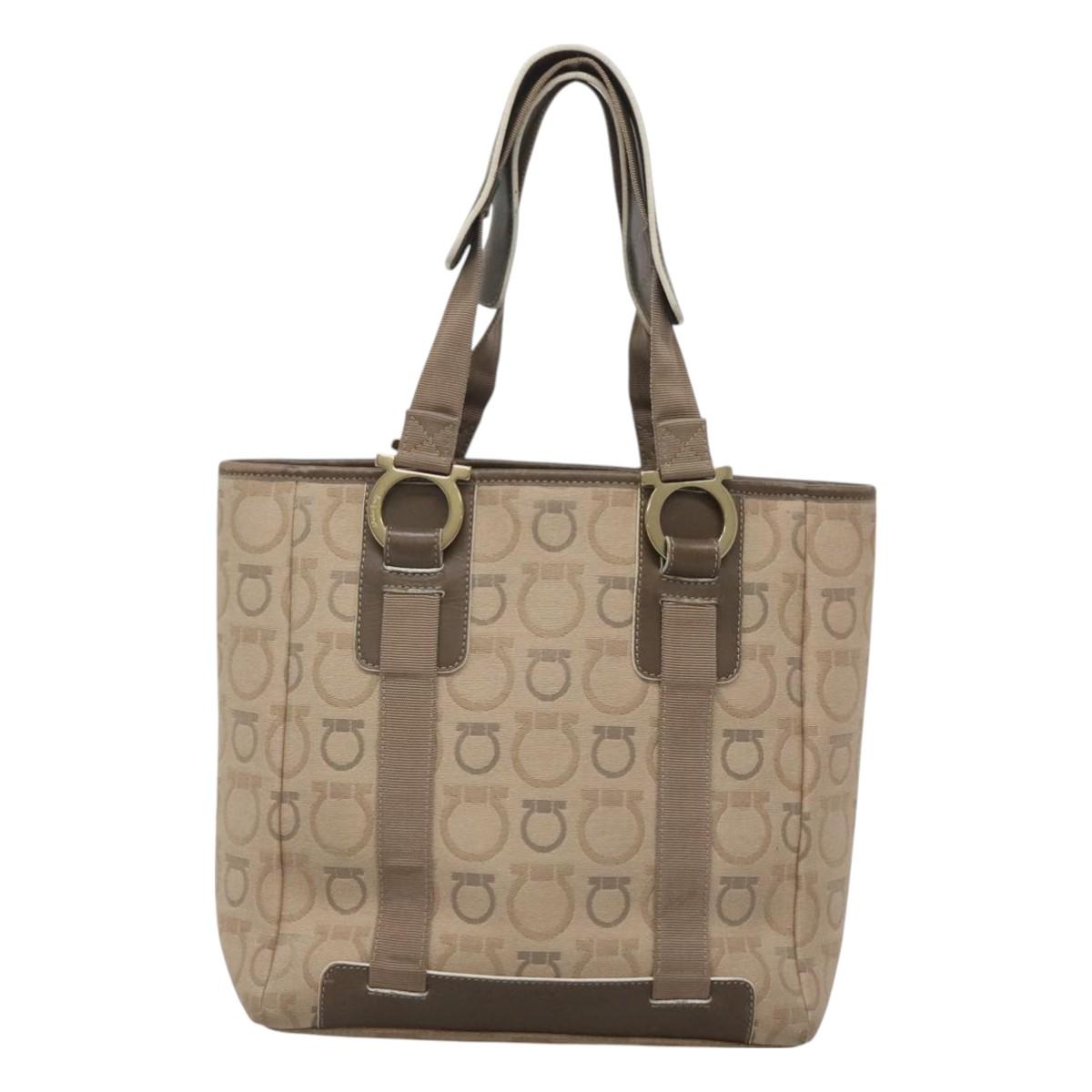 Salvatore Ferragamo Gancini Tote Bag Canvas Beige gold Auth BA3168