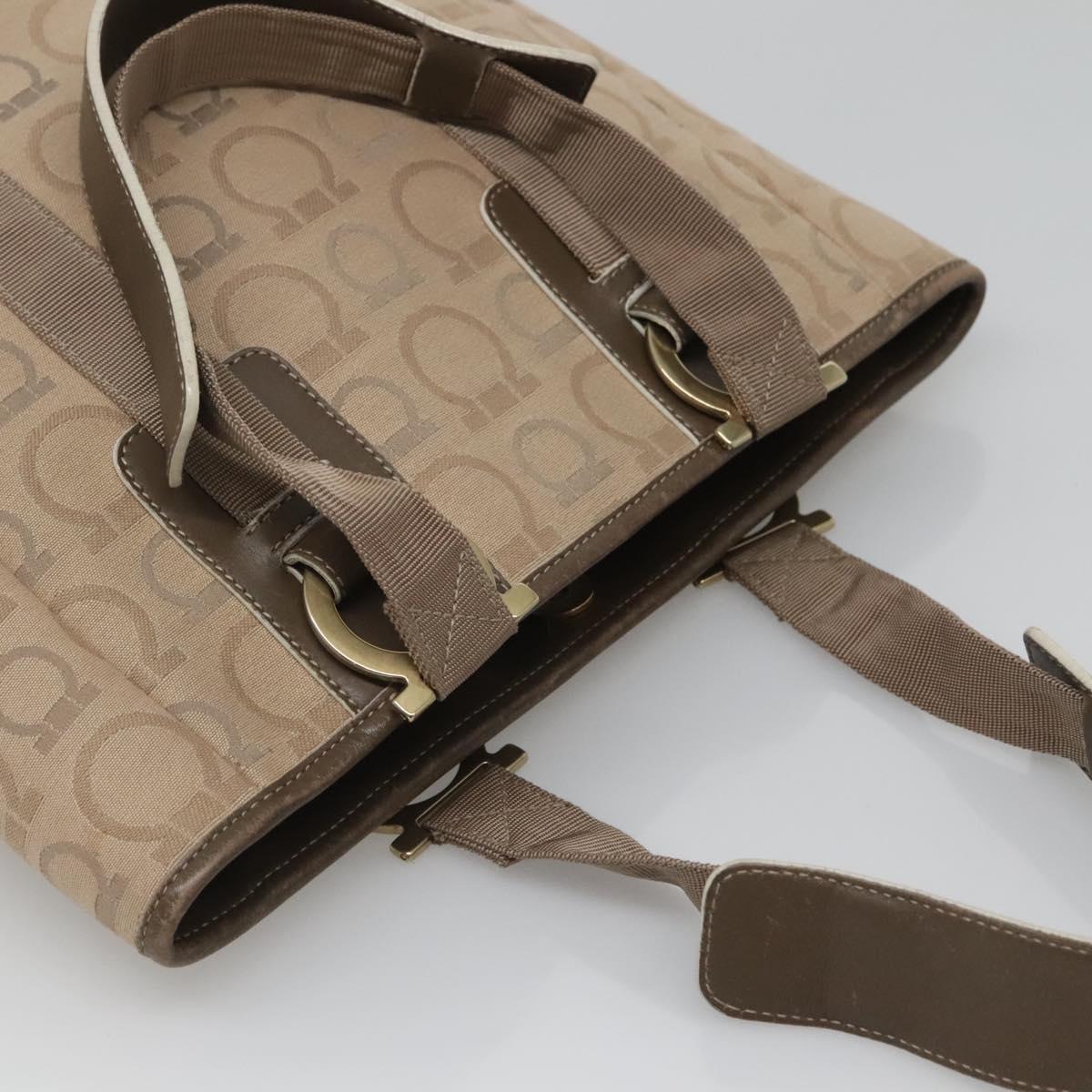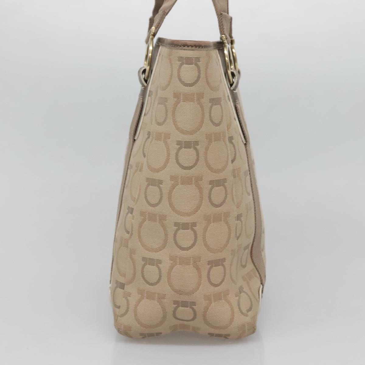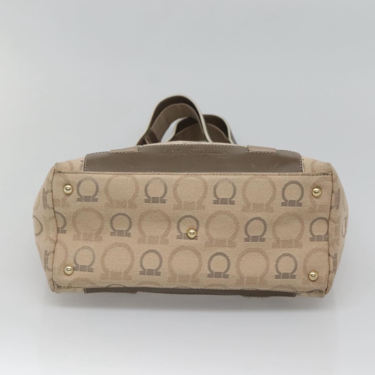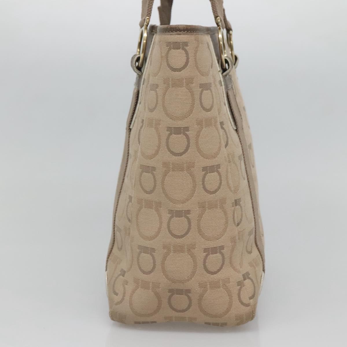 Salvatore Ferragamo Gancini Tote Bag Canvas Beige gold Auth BA3168