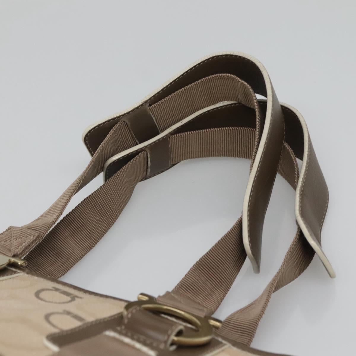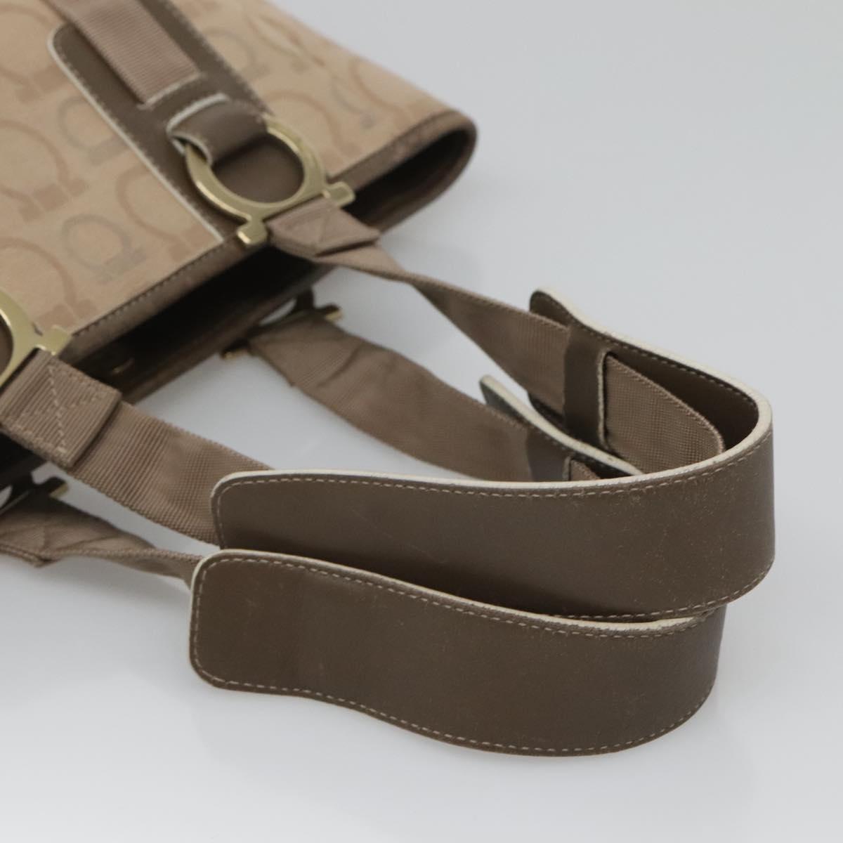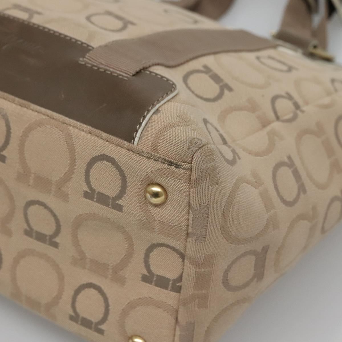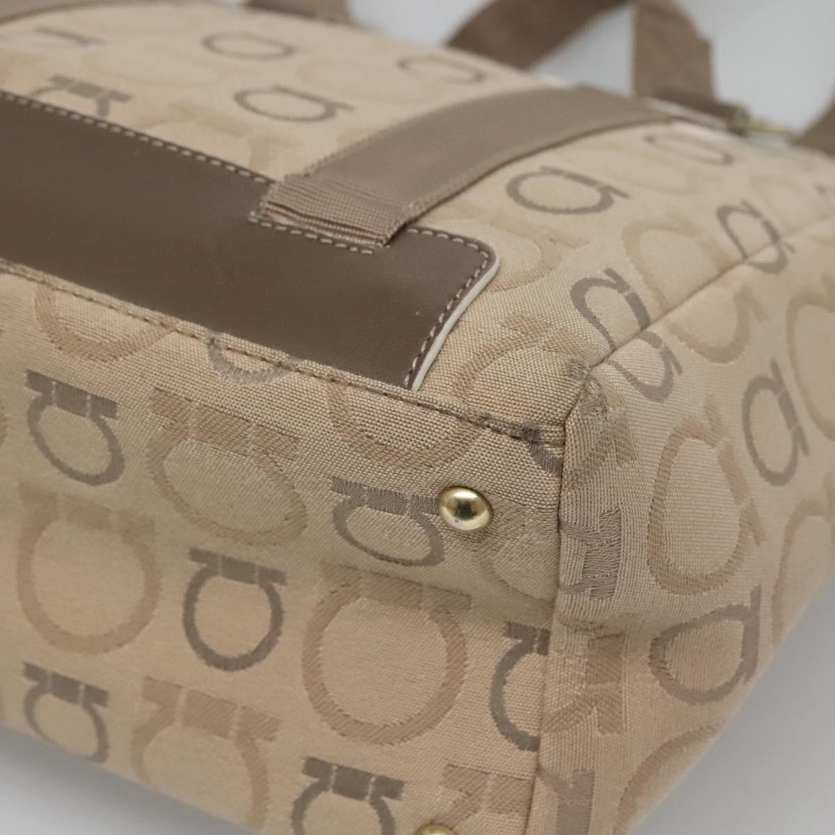 Salvatore Ferragamo Gancini Tote Bag Canvas Beige gold Auth BA3168