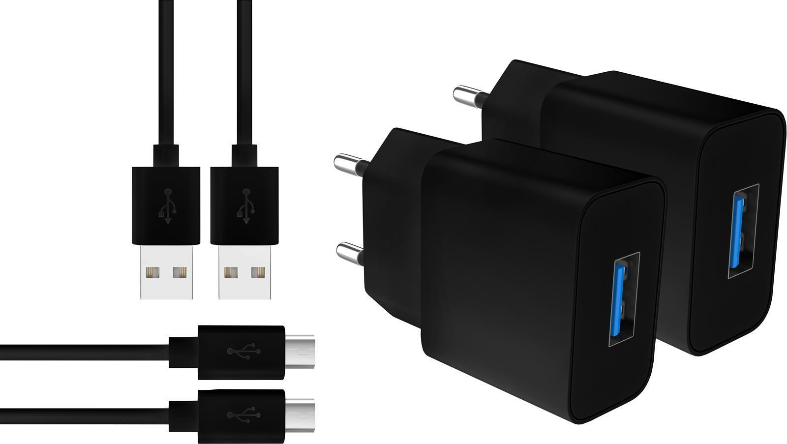 Sofort Kauf Micro USB Ladegerät 2X 2A 5V plus 2X Kabel 1m Samsung HTC Sony Nexus Schwarz