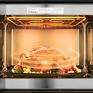 The integrated microwave oven and grill features a paint-finish cavity and a turntable made of glass, which makes it easy to clean. All you need to do is wipe this built in microwave gently with a soft damp cloth.