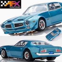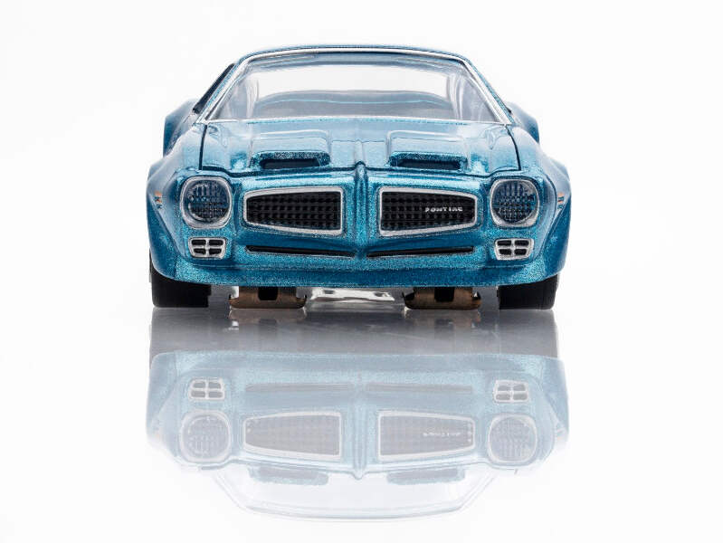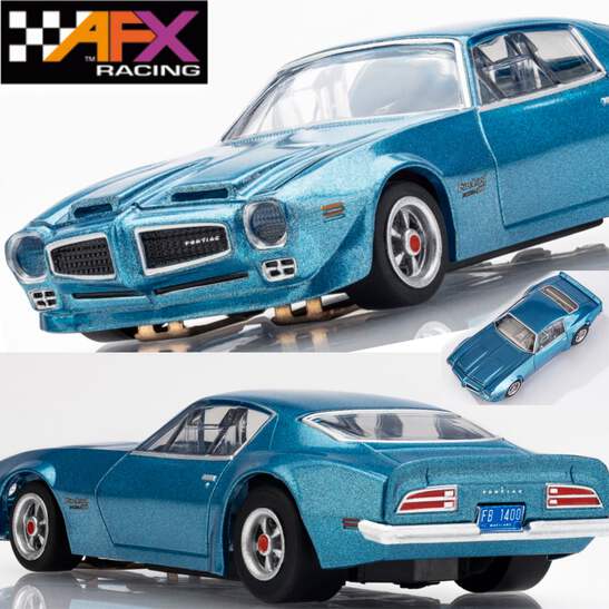 This AFX 1970 Pontiac Firebird Formula 400 HO slot car comes with the brand new Mega-G+ chassis that is completely re-designed to be smoother, quieter, 5% lighter, better handling, easier to drive, more durable, more consistent, uses 33% less electricity and runs cooler than the original Mega-G chassis.