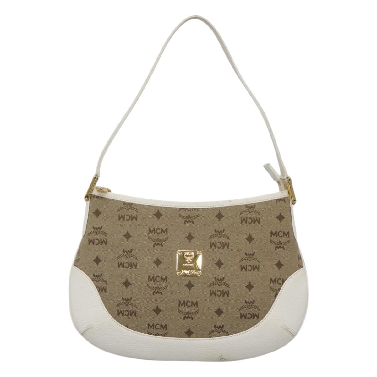 MCM Vicetos Logogram Shoulder Bag Canvas Beige Gold Auth 127092