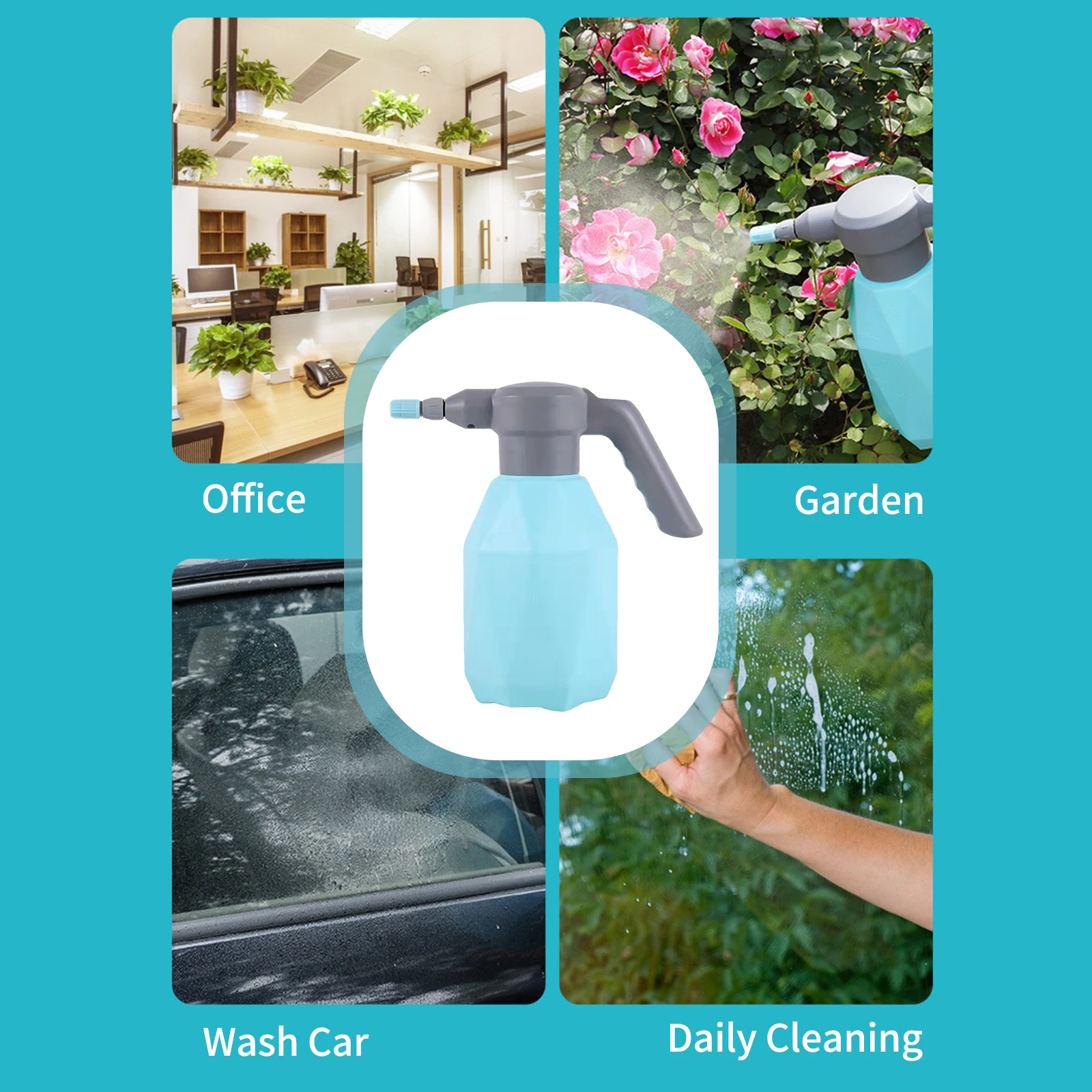 Electric garden sprayer with 2 spray patterns from a straight stream to a very fine mist by simply twisting the nozzle. Suitable for watering plants and flowers, cleaning the car, home cleaning, humidifying the air. It could be used as your garden sprayer, home water sprayer, indoor plant mister even a useful cleaning tool.