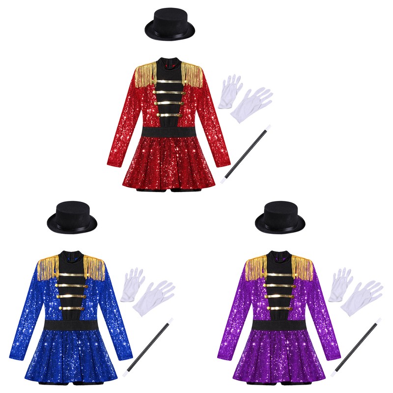 UK Girls Circus Ringmaster Costume Magician Showman Halloween Cosplay Outfits