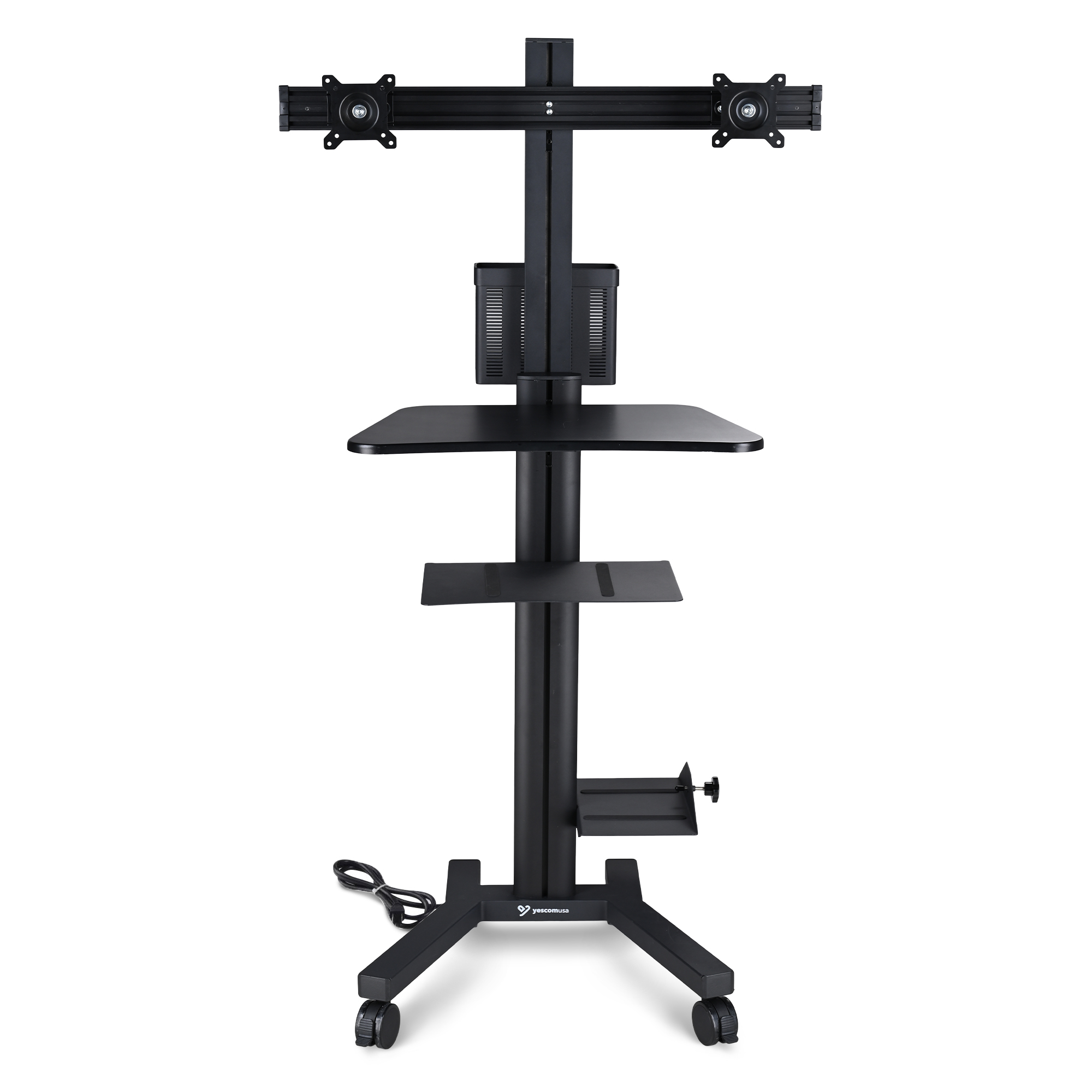 Yescom Mobile PC Stand Workstation w/ Dual Monitor Mount for Screen Up to 32"