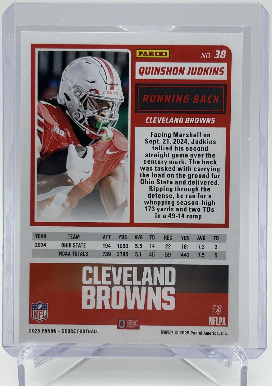 | 2025 Panini Score Base Quinshon Judkins Rookie Cleveland Browns #38 |
