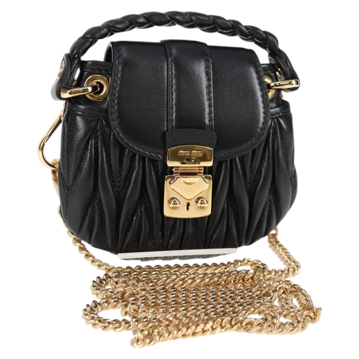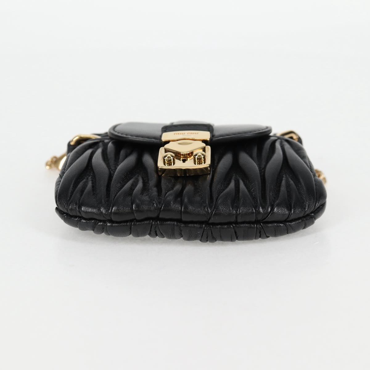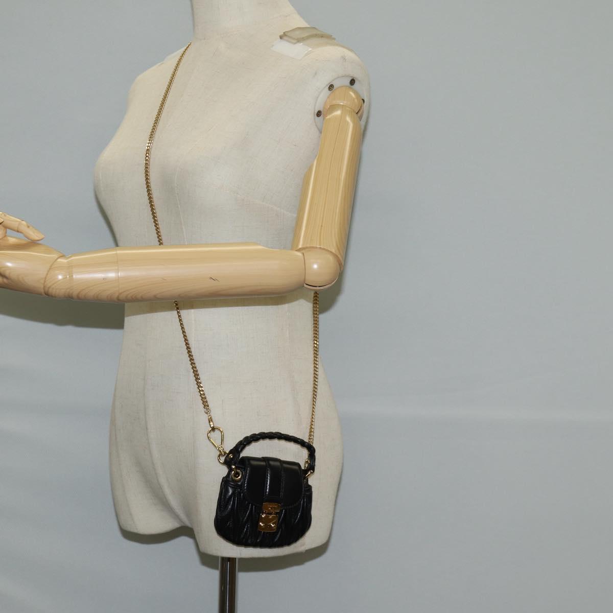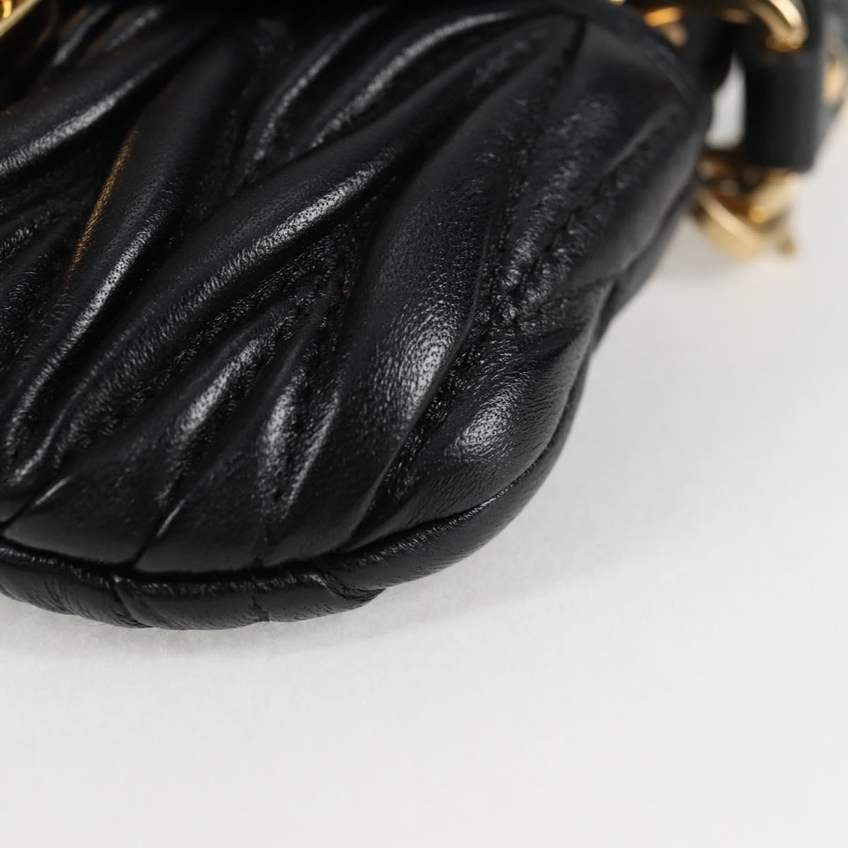 Miu Miu Matelasse Chain Pouch Shoulder Bag Leather Black Gold Auth 128140SM