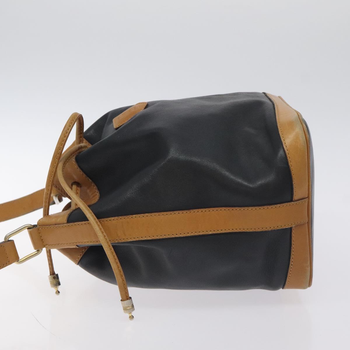 CELINE Shoulder Bag Leather Black Gold Auth BA3171