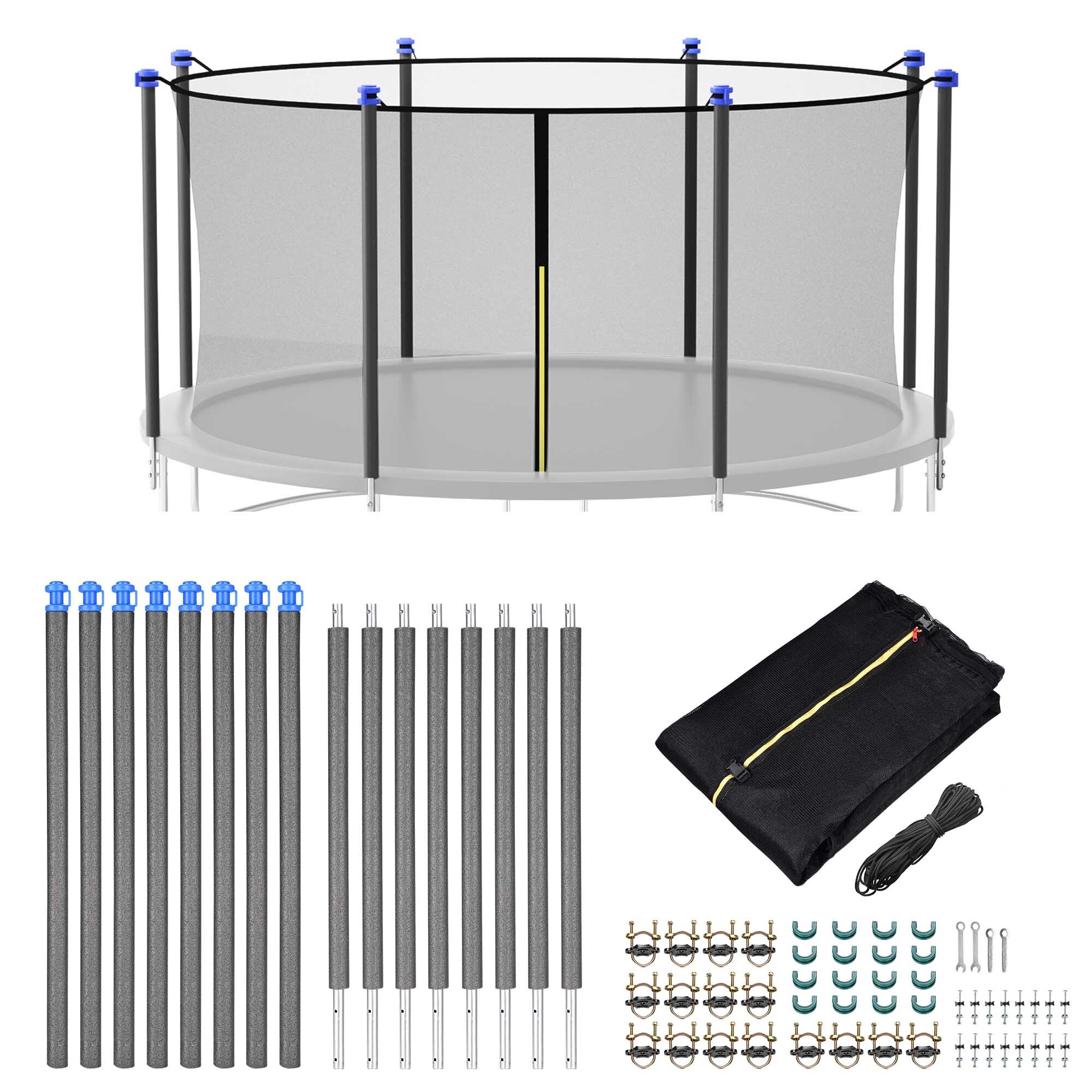 - Set of 8 Trampoline Replacement Enclosure Poles compatible with most 10/12/13/14/15 ft trampolines with 8 straight poles, designed to upgrade your trampoline with brand new look while replace the worn-out parts