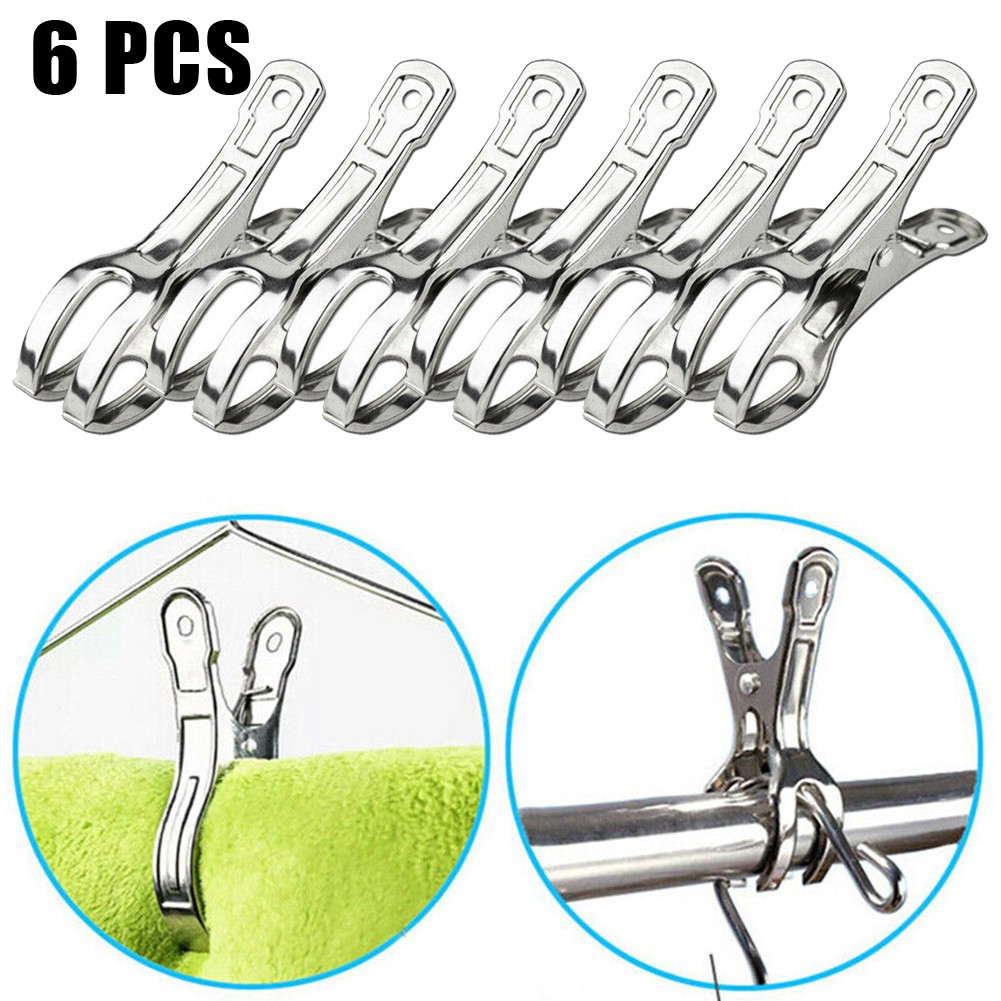 6 Pcs Stainless Steel Beach Towel Clips Clothes Pegs Heavy Duty Laundry Pins