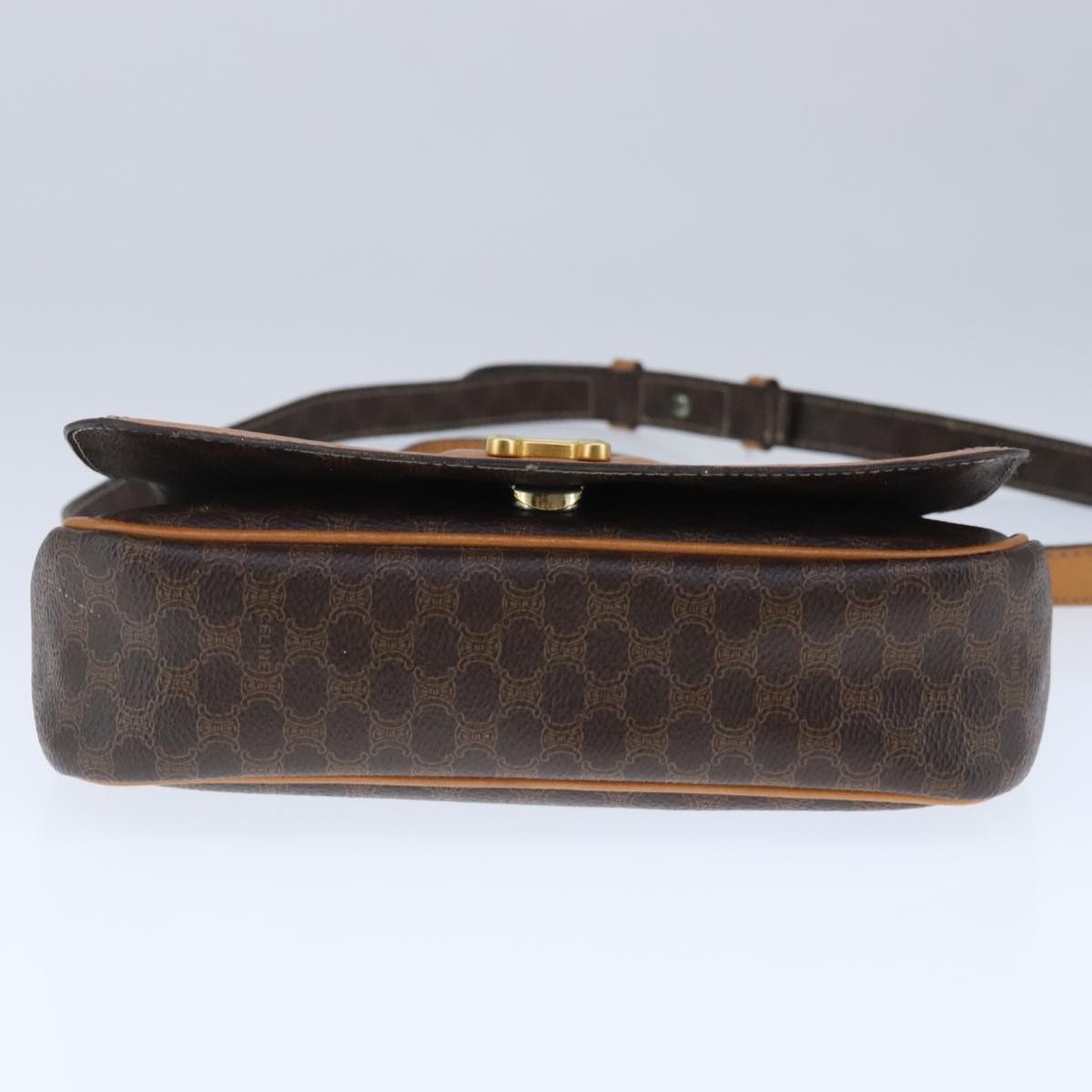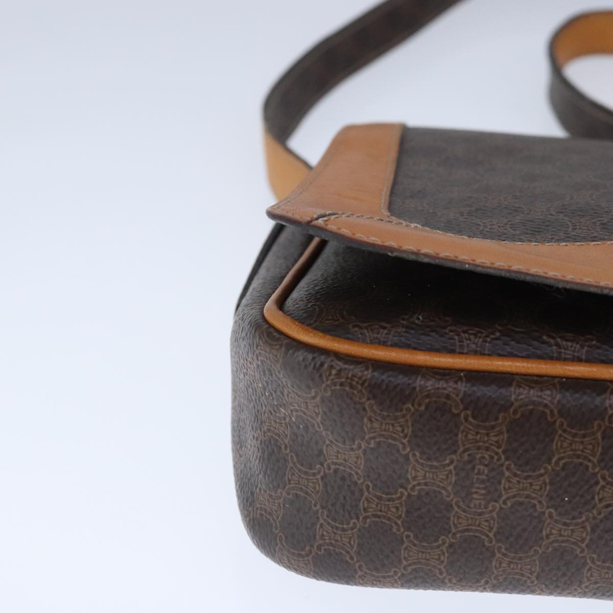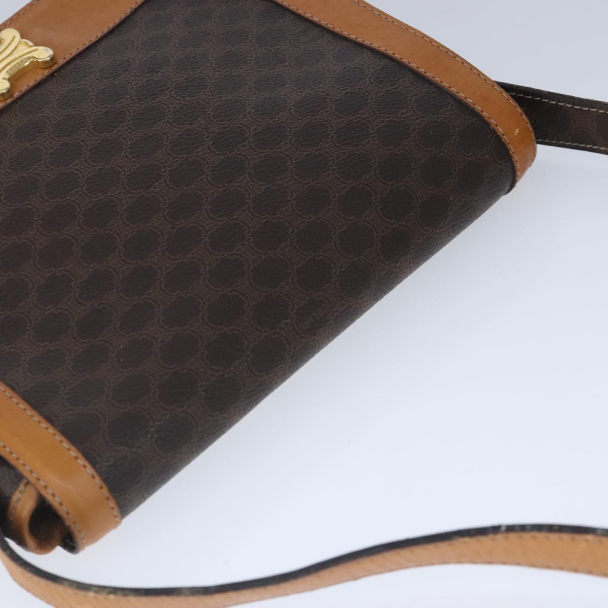 CELINE Macadam Canvas Shoulder Bag PVC Leather Brown Gold Auth 102371