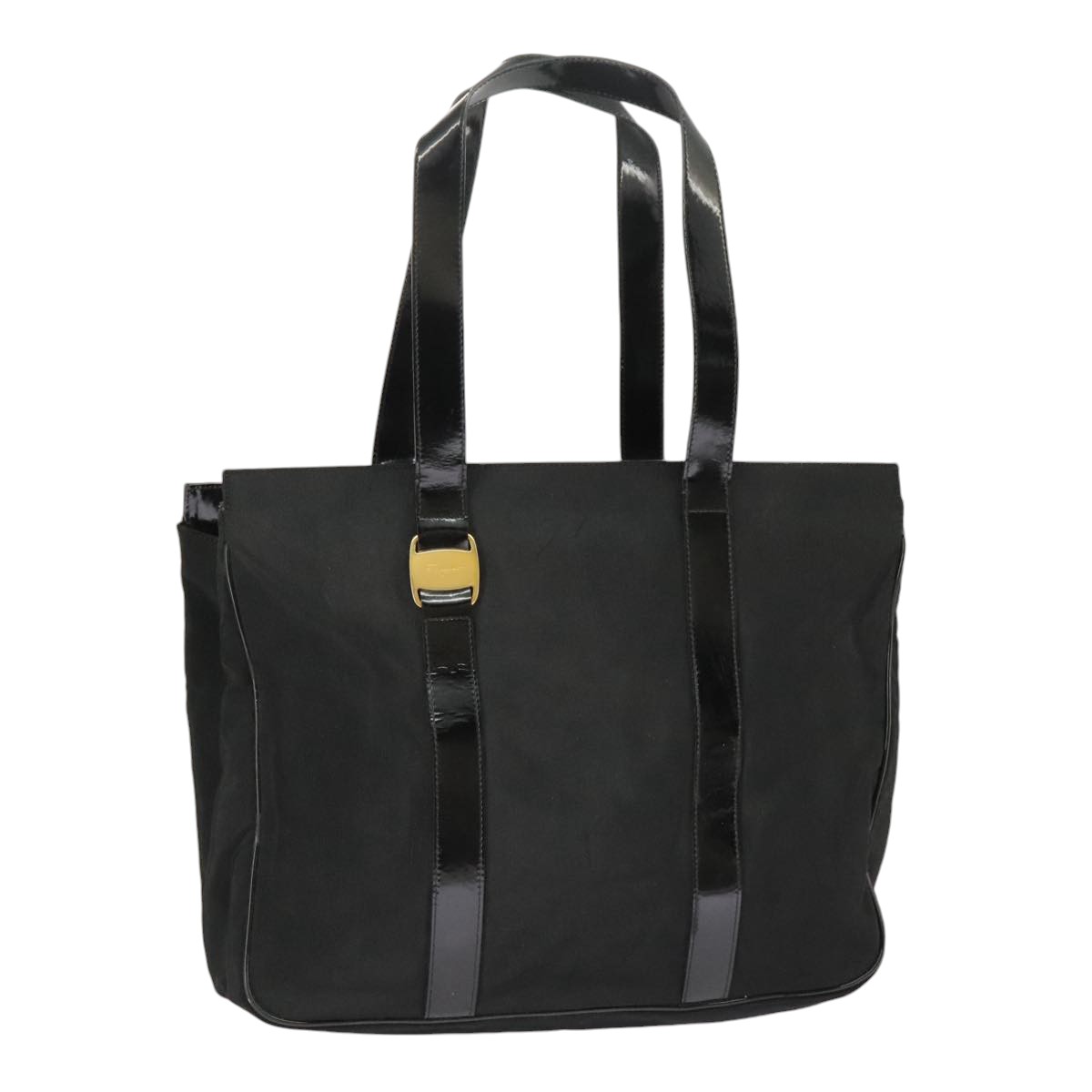 Salvatore Ferragamo Tote Bag Canvas Black Gold Auth bs19507