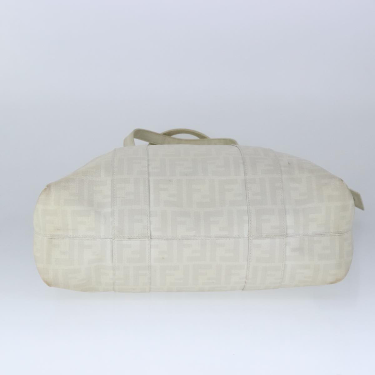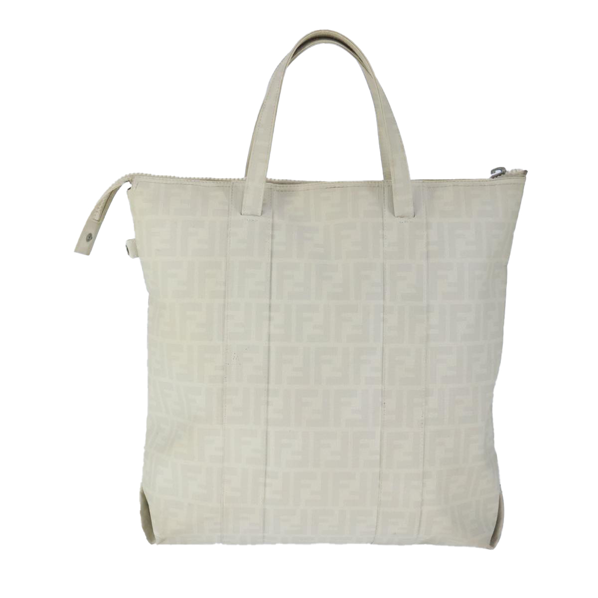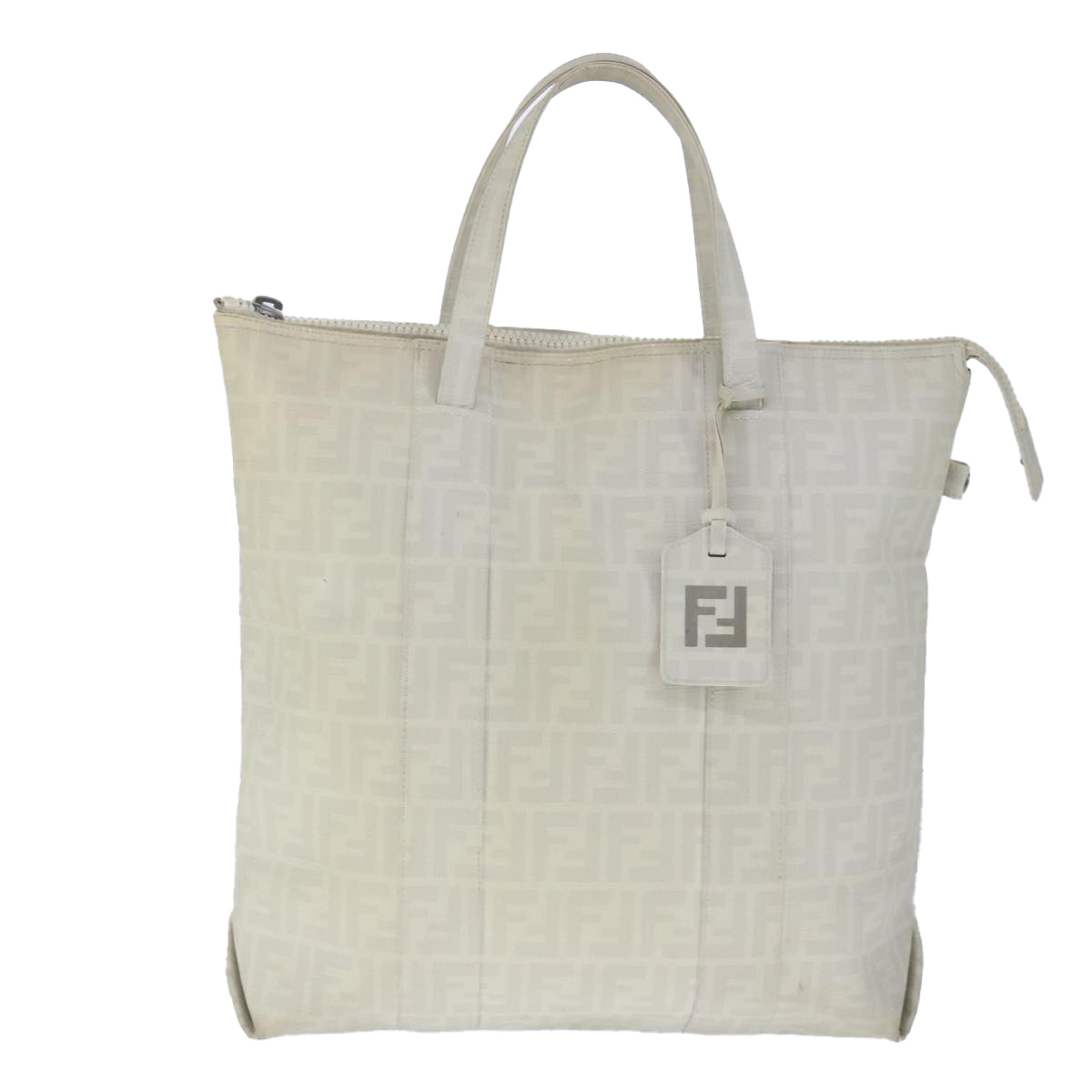 FENDI Zucca Canvas Tote Bag PVC White Silver Auth 102974