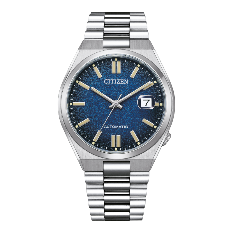 CITIZEN NJ0151-88L TSUYOSA AUTOMATIC BLUE DIAL MENS WATCH This textured blue dial with the accented markers is surely one of my favorite Tsuyosas. Especially nice in person. A Very nice watch! Basic Information Case size (W× H) 40 × 11.7 mm Case material Stainless steel Band Stainless Steel Bracelet, Fold Over Clasp Water resistance 50-meter water resistance Movement Automatic, 21 JewelsCaliber 8210 Accuracy ±20 sec / day Exterior Crystal Sapphire Glass Watch Features Functions Hour, minute, second displayDate display