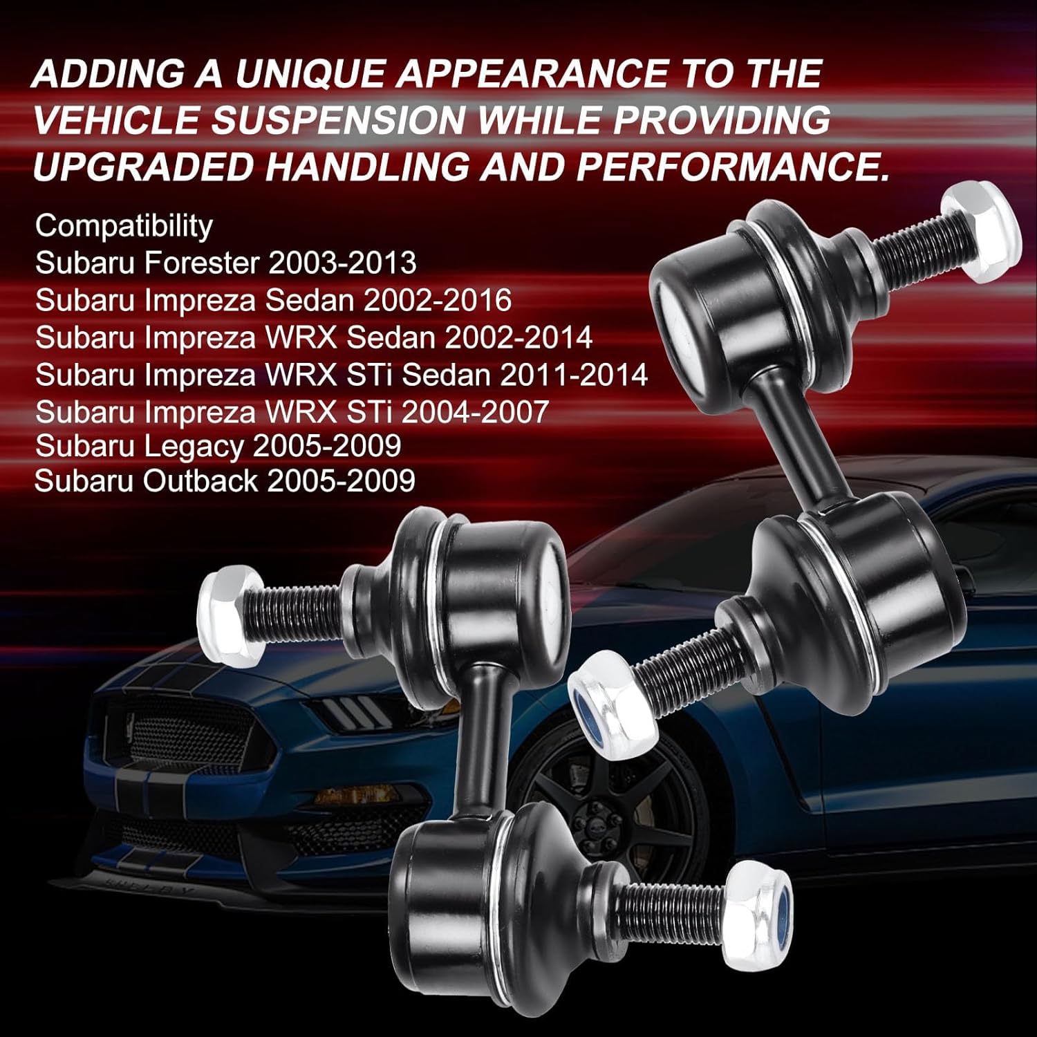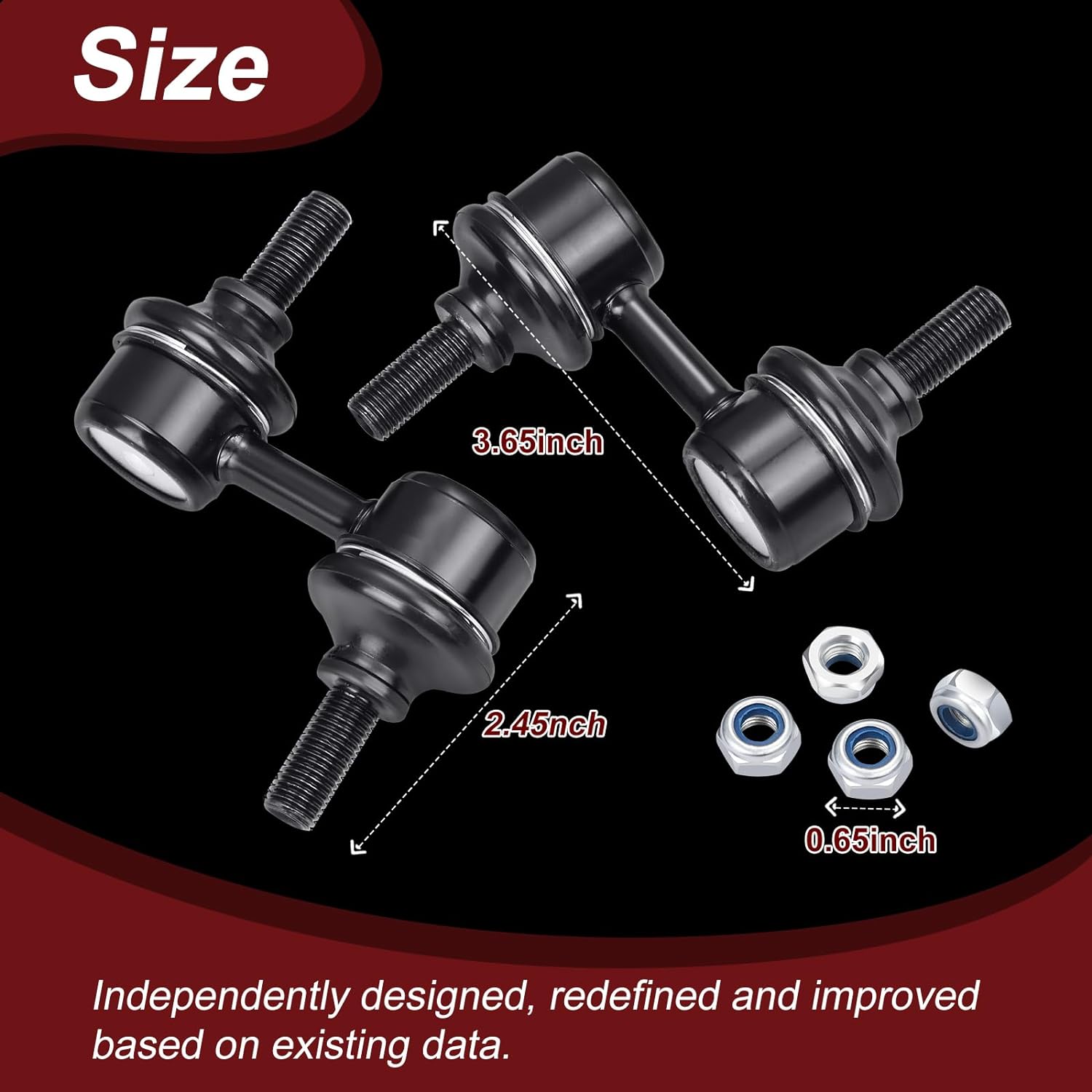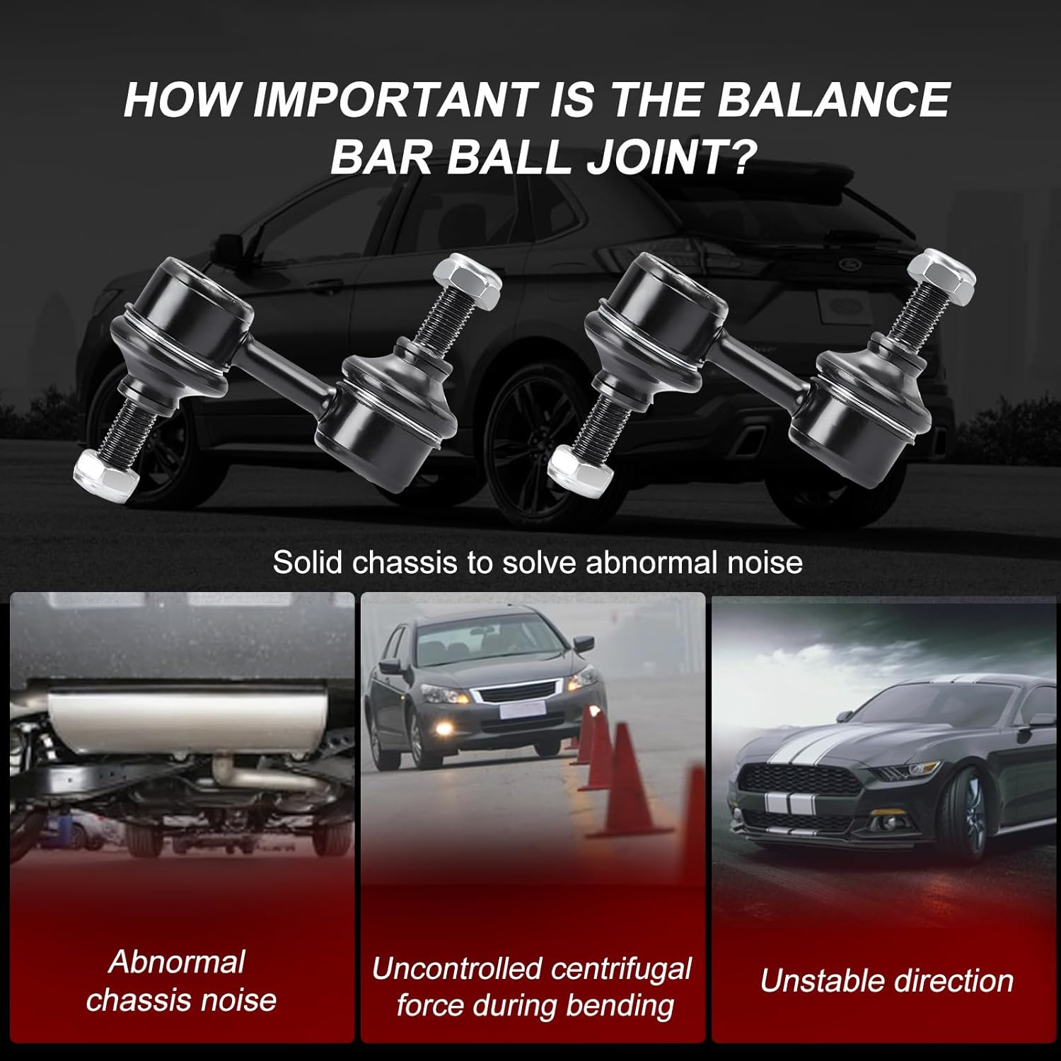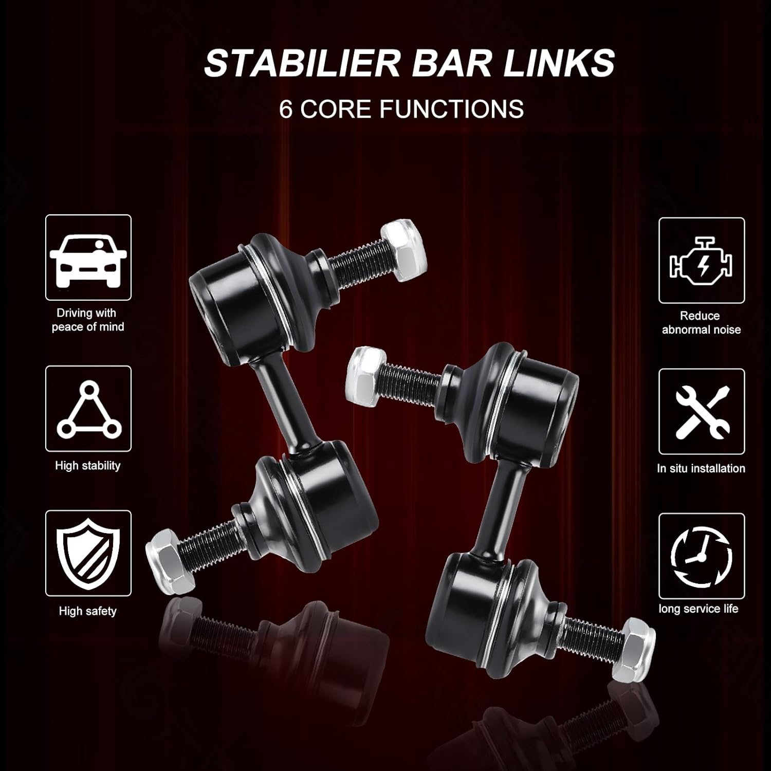 【Function】Signs your sway bar links need replacement include clunking sounds during turns and bumps, loose or misaligned steering wheel, poor handling, uneven tire wear, and visible damage in the suspension system. Replace our accessories, can take away the clunking/clicking coming from the suspension you heard from every bumps in the road! Giving you a good driving experience.