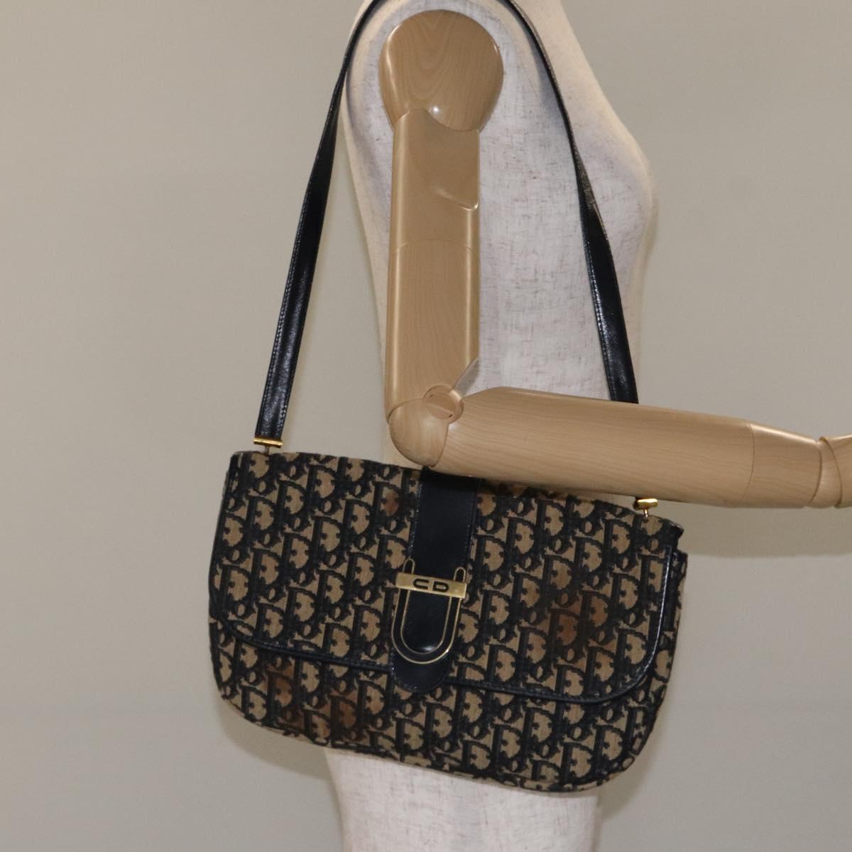 Christian Dior Trotter Canvas Shoulder Bag Navy Auth 130909