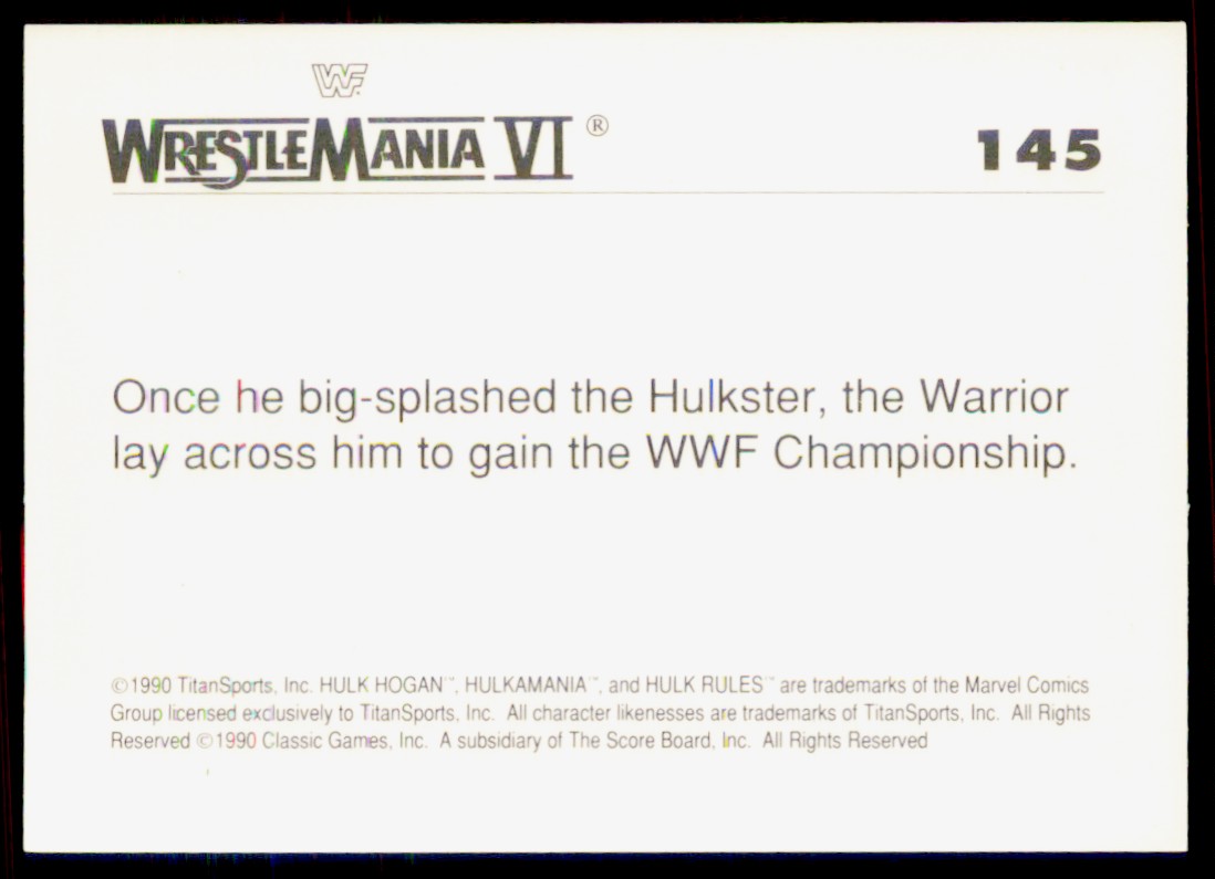 | 1990 Classic WWF Hulk Hogan/Ultimate Warrior #145 | ||||||||||||||