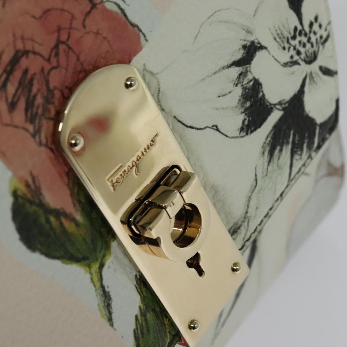 Salvatore Ferragamo Gancini Chain Hand Bag Leather 2way Pink Gold Auth 131645M
