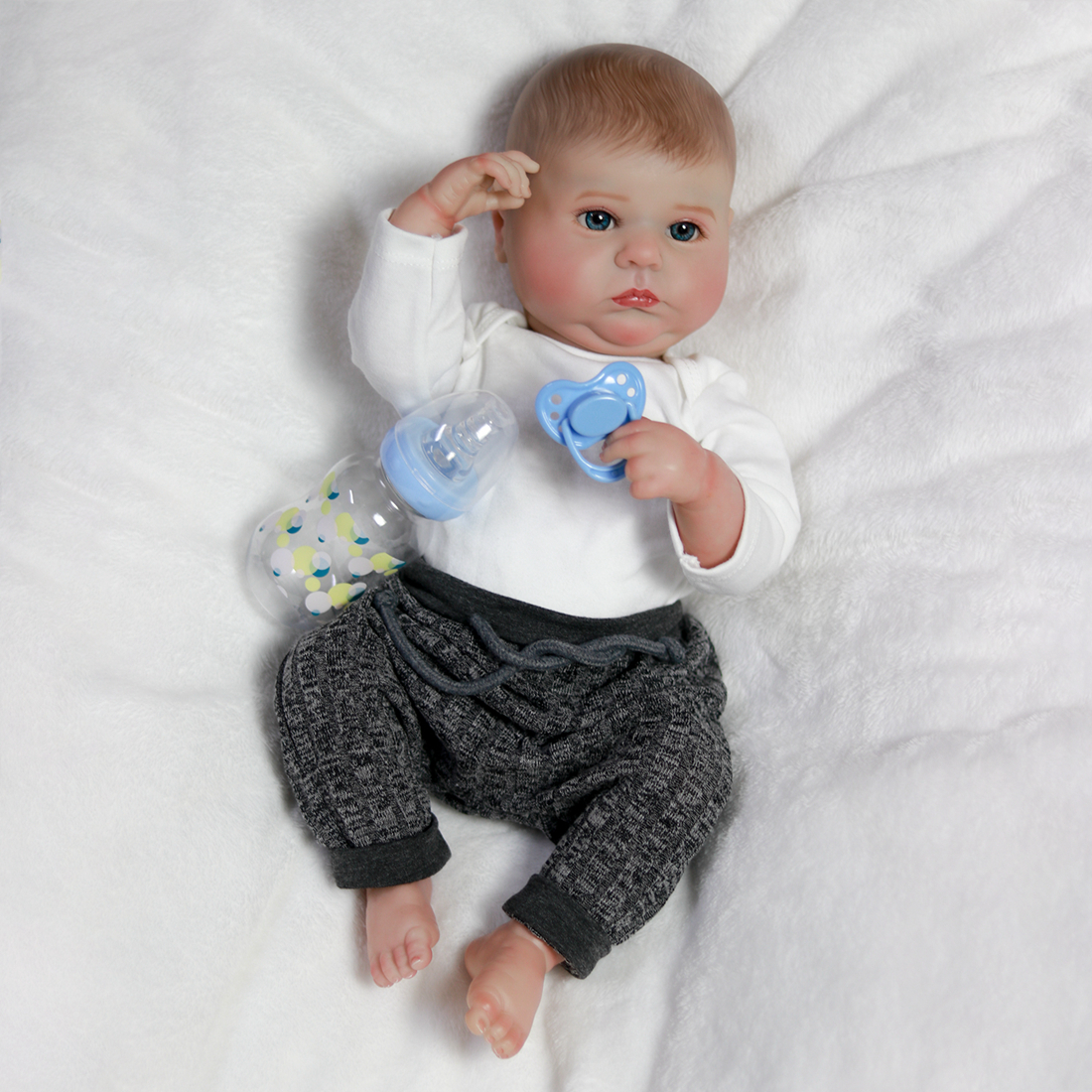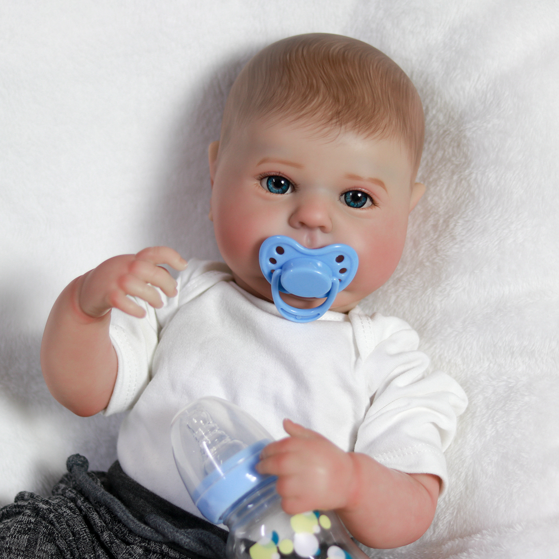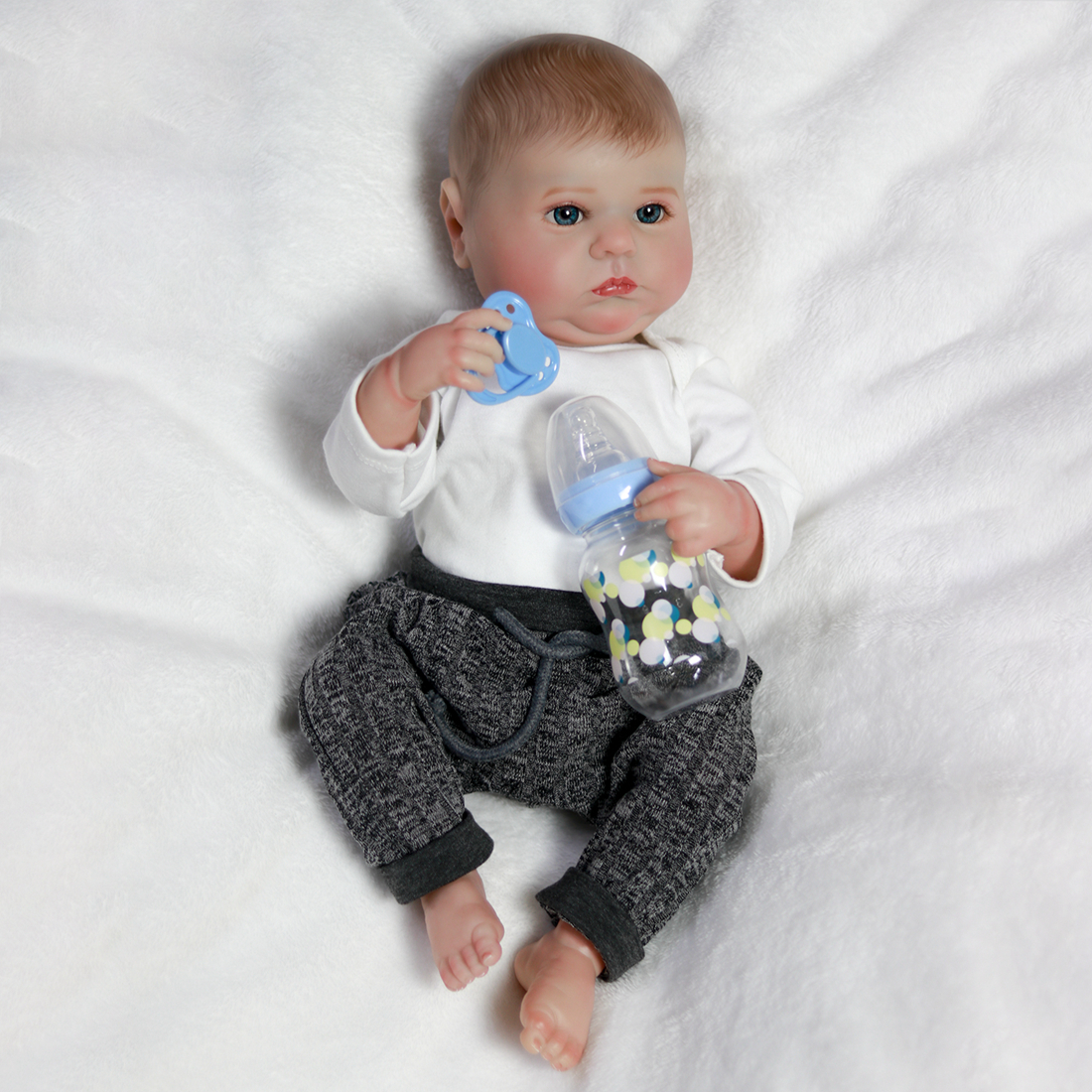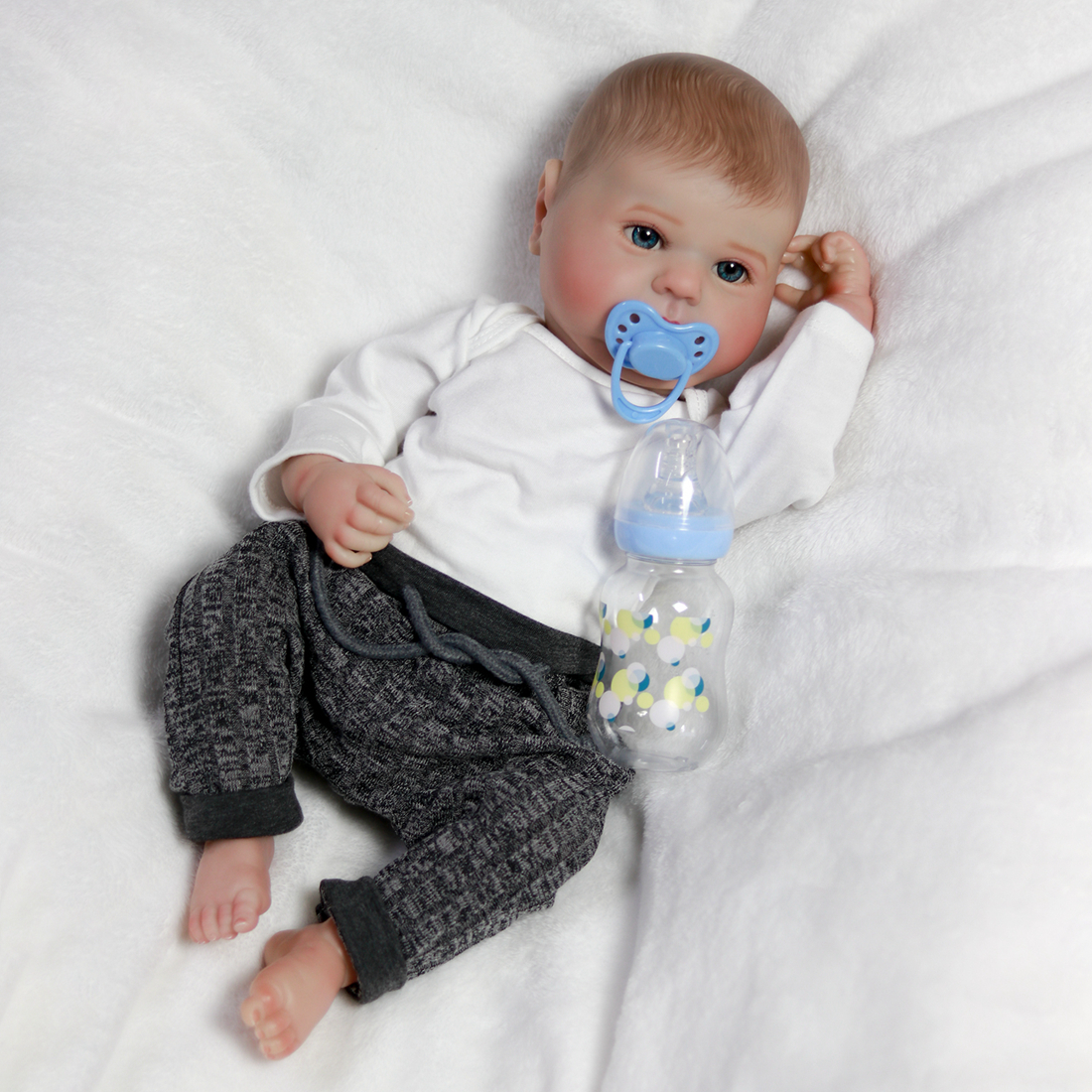 The Reborn Baby can sit and lie down, but can't speak or cry.