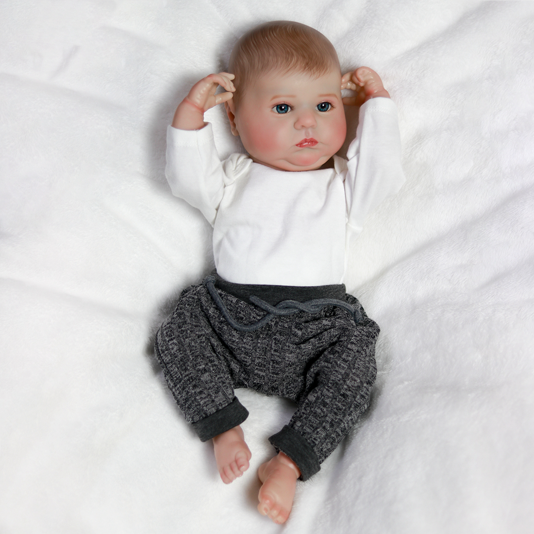 Skin: The baby has a lovely skin tone, mottling, which is after special treatment with multi-layer processes, will not fade.