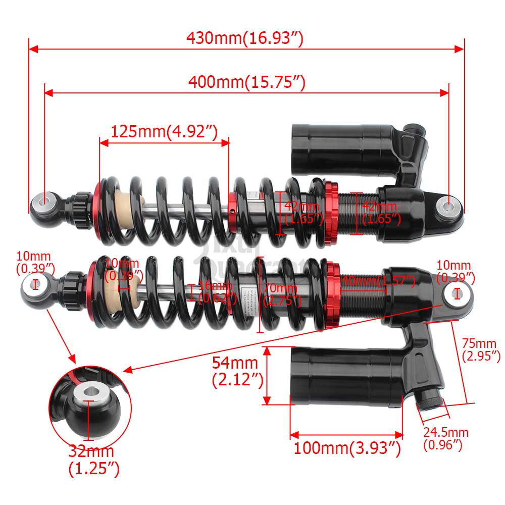 Fit for the MODELS(ATV/UTV/Go Kart/Quad Dirt/Sport Bikes/motorcycles) with length of eye center to eye center 400mm,Eye Diameter 10mm,and Eye thickness 32mm.