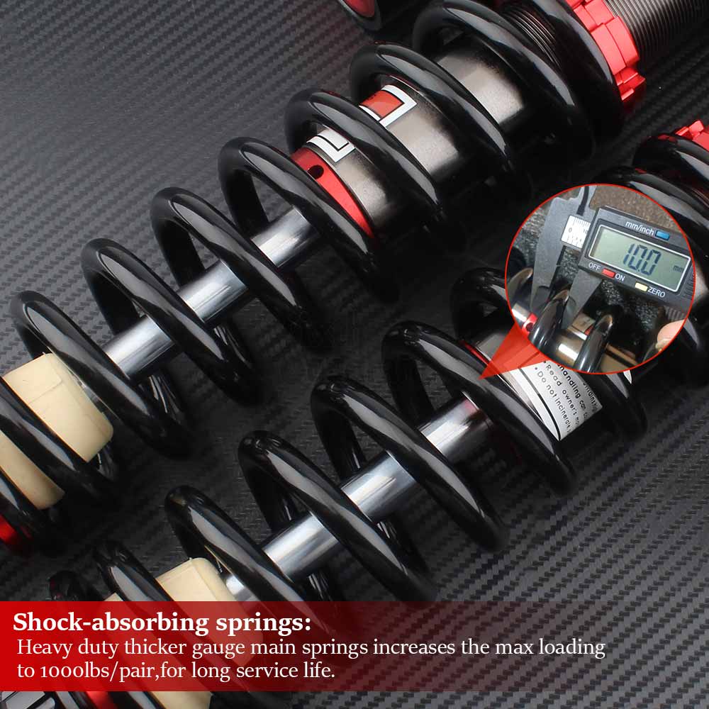 3.Adjustable Rebound Speed, Easily adjust the knob to control the rebound speed of the shock absorber, offering flexibility for fast or slow adjustments. This feature effectively addresses bumping problems on uneven roads, such as holes and ruts, while also preventing bottoming out on jumps.