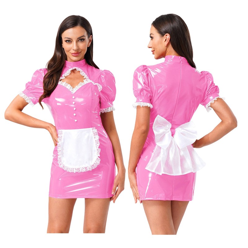 The glossy PU material gives the dress a modern and edgy look, making it stand out from ordinary costumes.