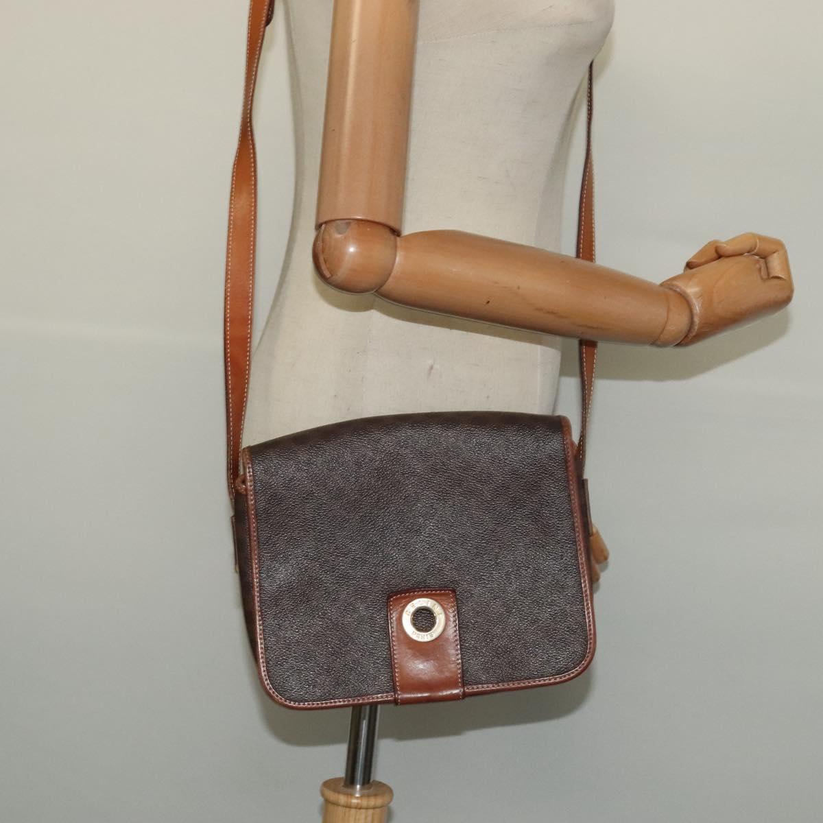 CELINE Macadam Canvas Shoulder Bag PVC Brown Gold Auth 131356