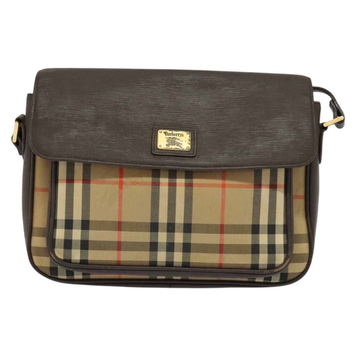 Burberrys Nova Check Shoulder Bag Canvas Beige Gold Auth ep9574