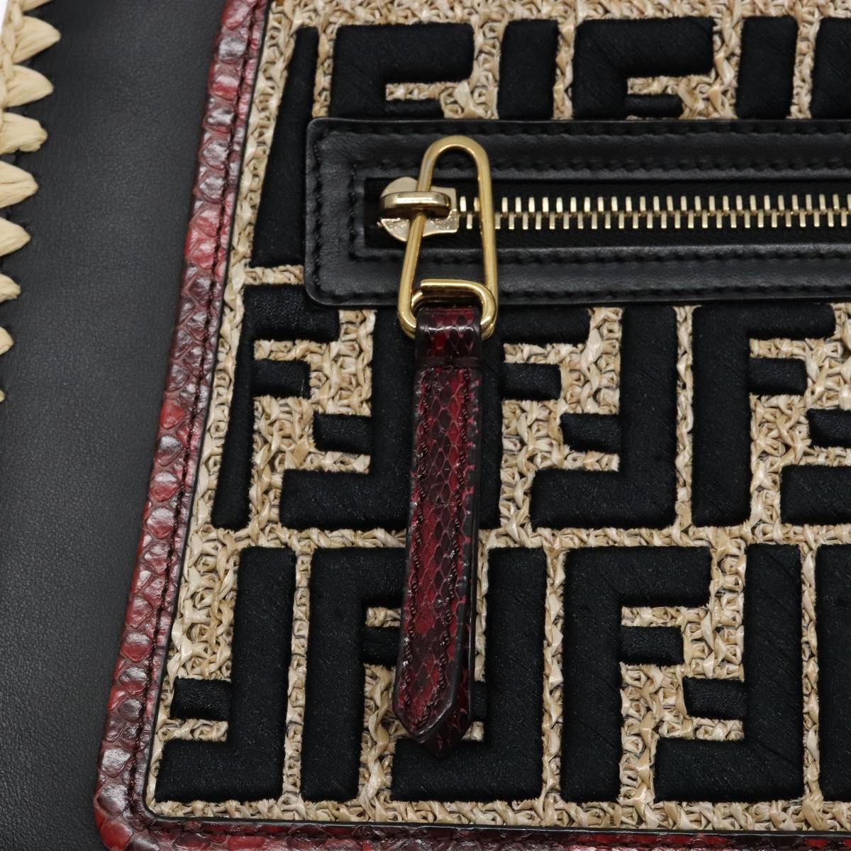 FENDI Hand Bag Leather 2way Black Gold Auth 82745