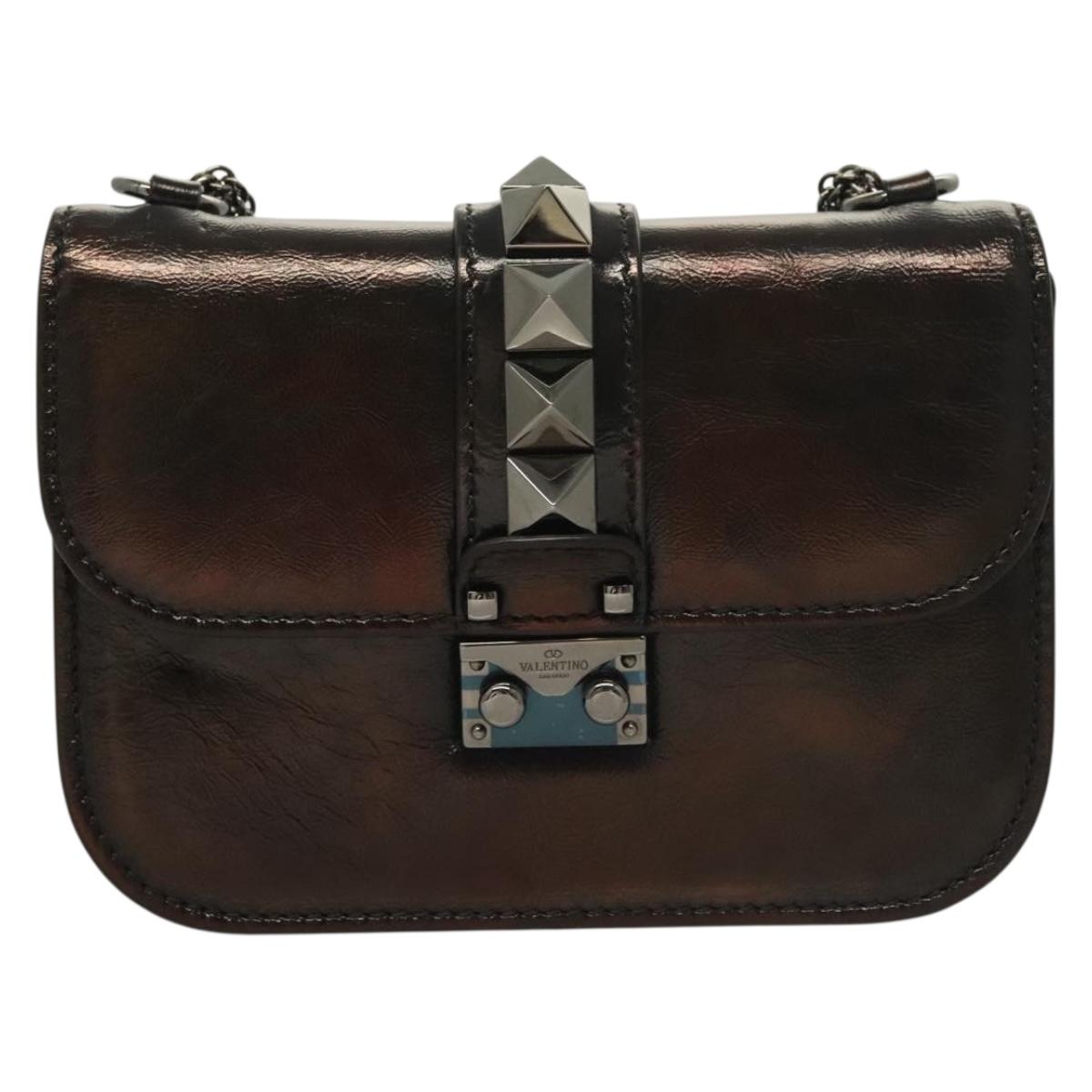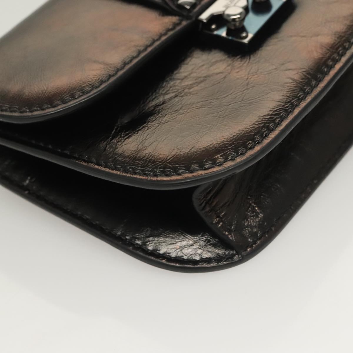 VALENTINO Chain Shoulder Bag Leather Brown Auth gh318