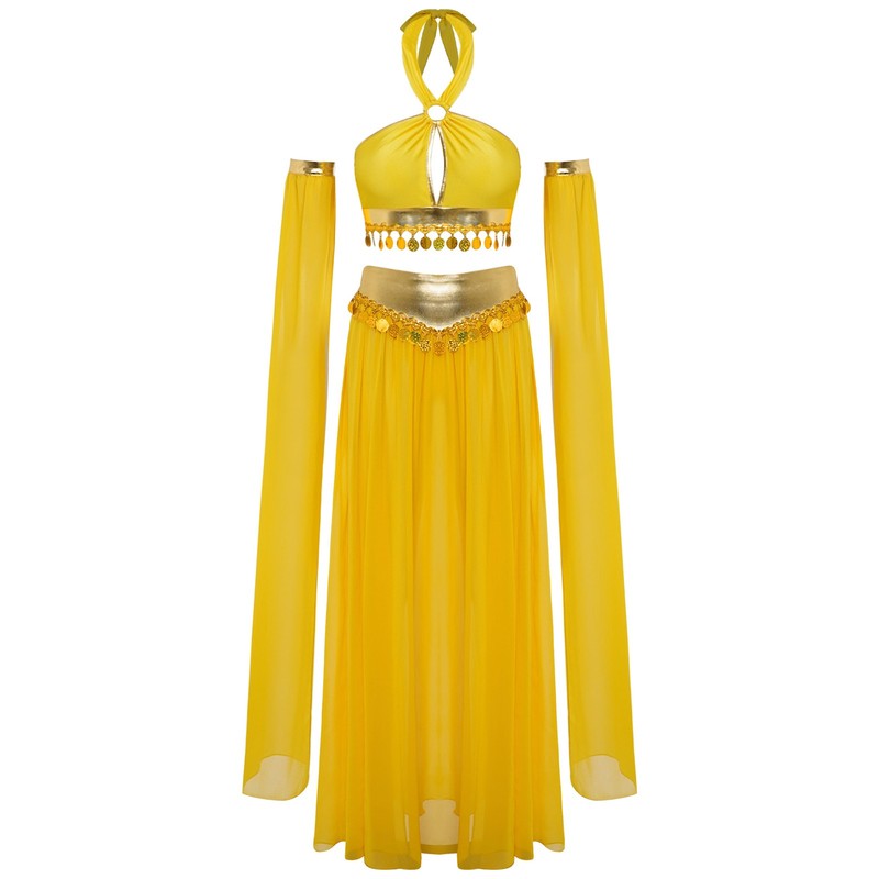 The removable split sleeves offer versatility, allowing you to customize the look according to different performance themes.Perfect for belly dance, Halloween, theme party, dancing party, dance class, dance competition or stage performance.