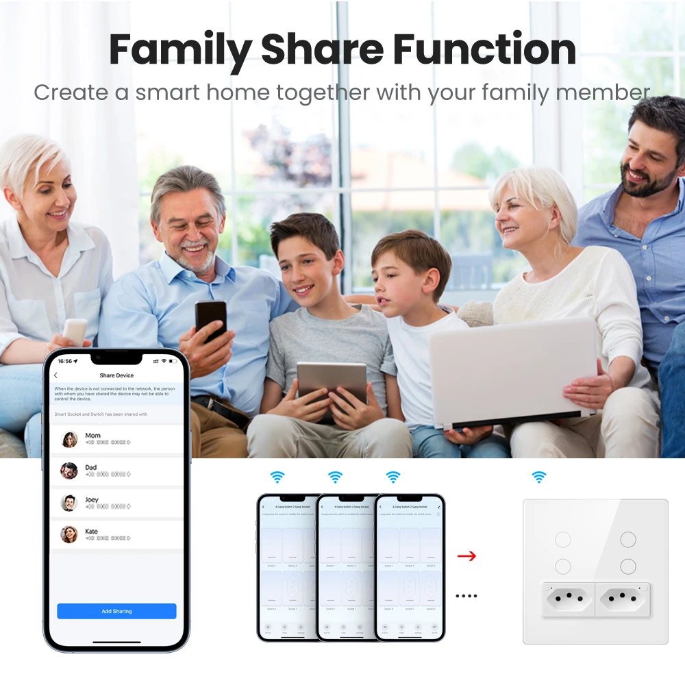 [ Family Share Function ] -You can share the light switch and socket to your family with the limited right,create a smart home together with your family member.