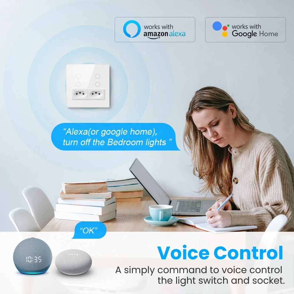 [ Hand Free Voice Control ] -The brazil light switch and socket can also connect with your amazon alexa and google home,simple a voice command to control it.