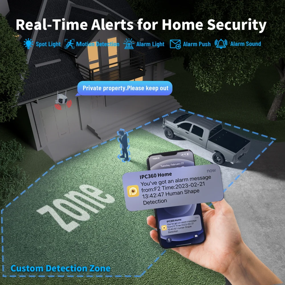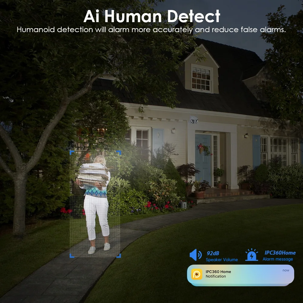 Quickly finds human targets and immediately sends a notification to your phone, letting you see what happens anywhere.