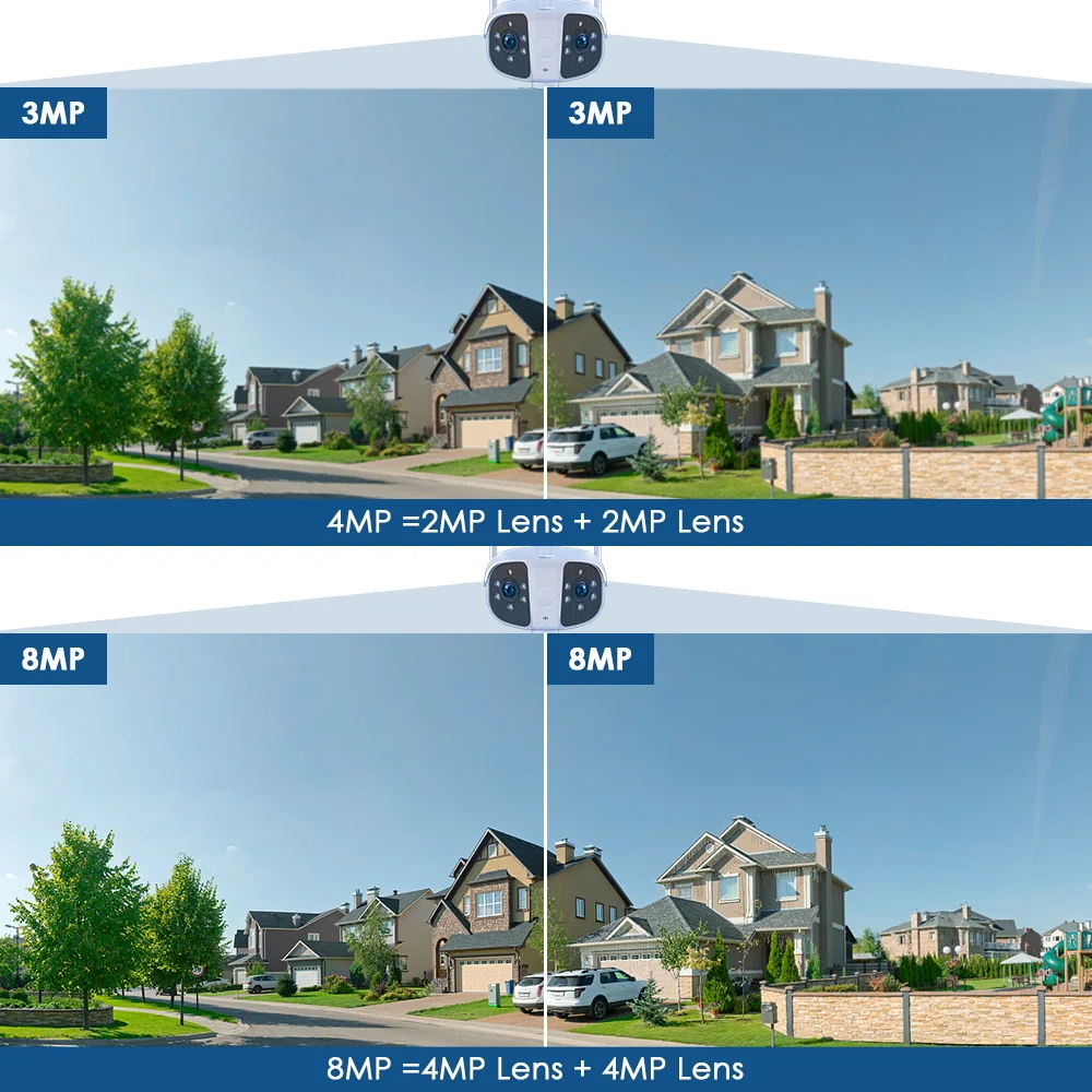 8MP Dual Lens Camera, 4MP(single len) + 4MP (single len)= 4K 8MP (Dual Lens)