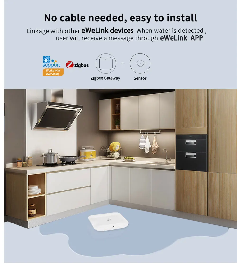 Zigbee Water Leak Sensor Wireless Ewelink App Remote Monitoring Water Leakage Detector Alarm Smart Home Security Protection