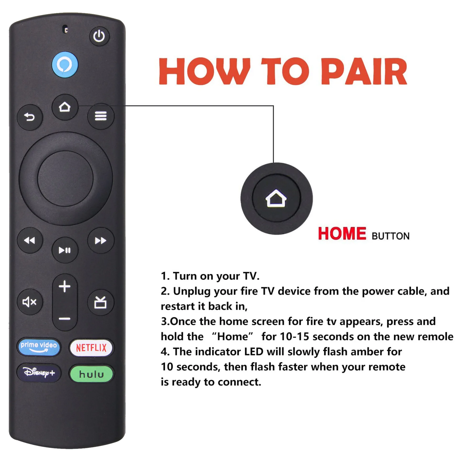 This is Replacement voice remote control, you need to pair it firstly before you use, and below is pairing steps: Press and Hold the Home button about 10-15 seconds, then Release when the LED starts to rapidly flash, waiting about 30-60 seconds (Entering Pairing mode, LED Flash), then remote should automatically Pair with your device.