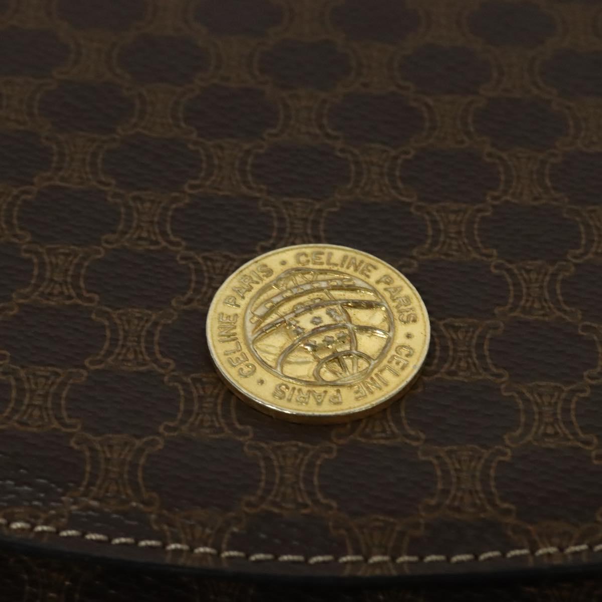 CELINE Macadam Canvas Shoulder Bag PVC Leather Brown Gold Auth 132703